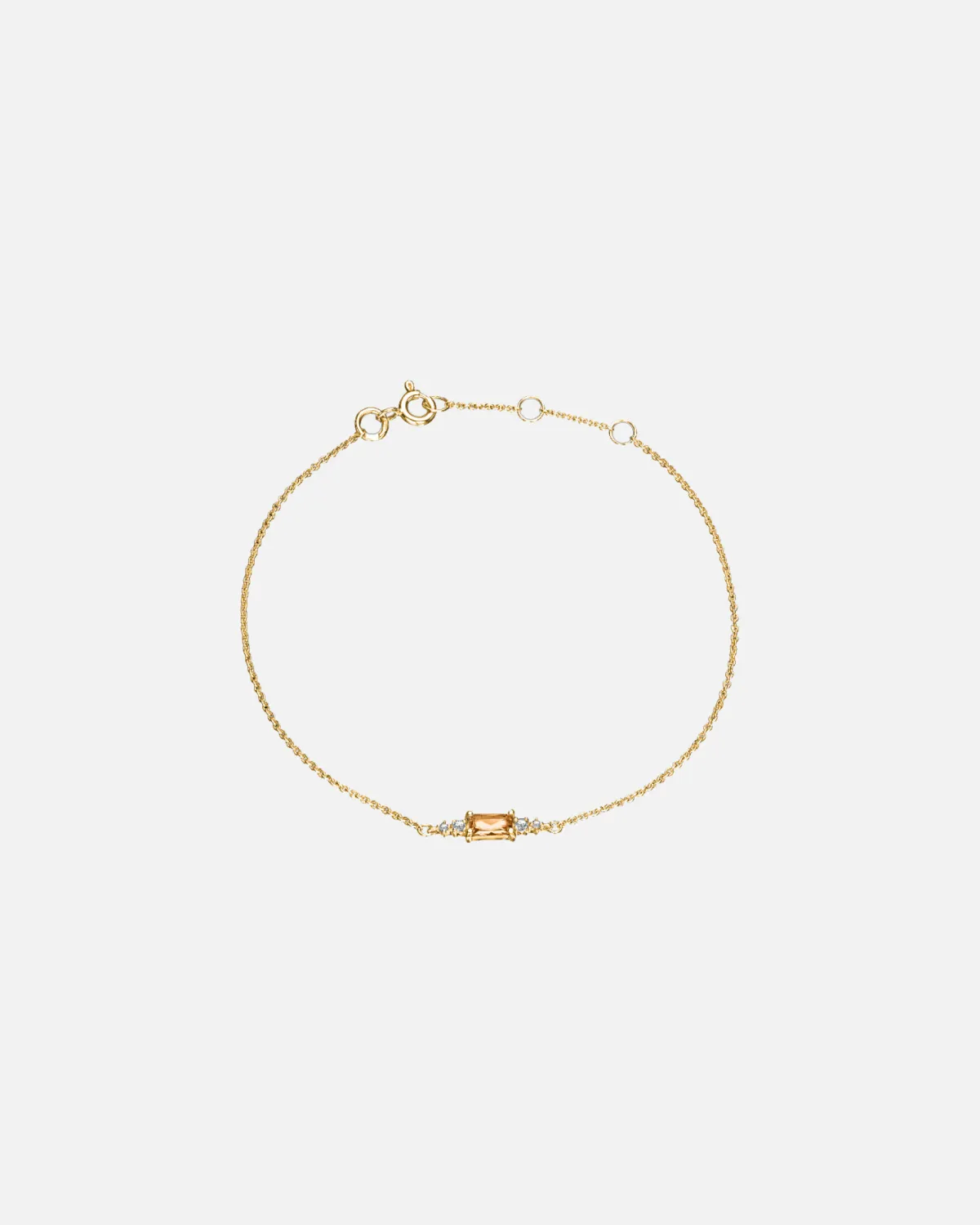 Лаконичный браслет из золота с отсылкой на Ар-Деко со вставками из цитрина багетной огранки и белыми топазами. Дополнит ваш сет браслетов или будет аккуратным акцентом на руке. Имеет регулятор длины для комфортной посадки, однако если вам необходим другой размер — может быть изготовлен в нём под заказ.