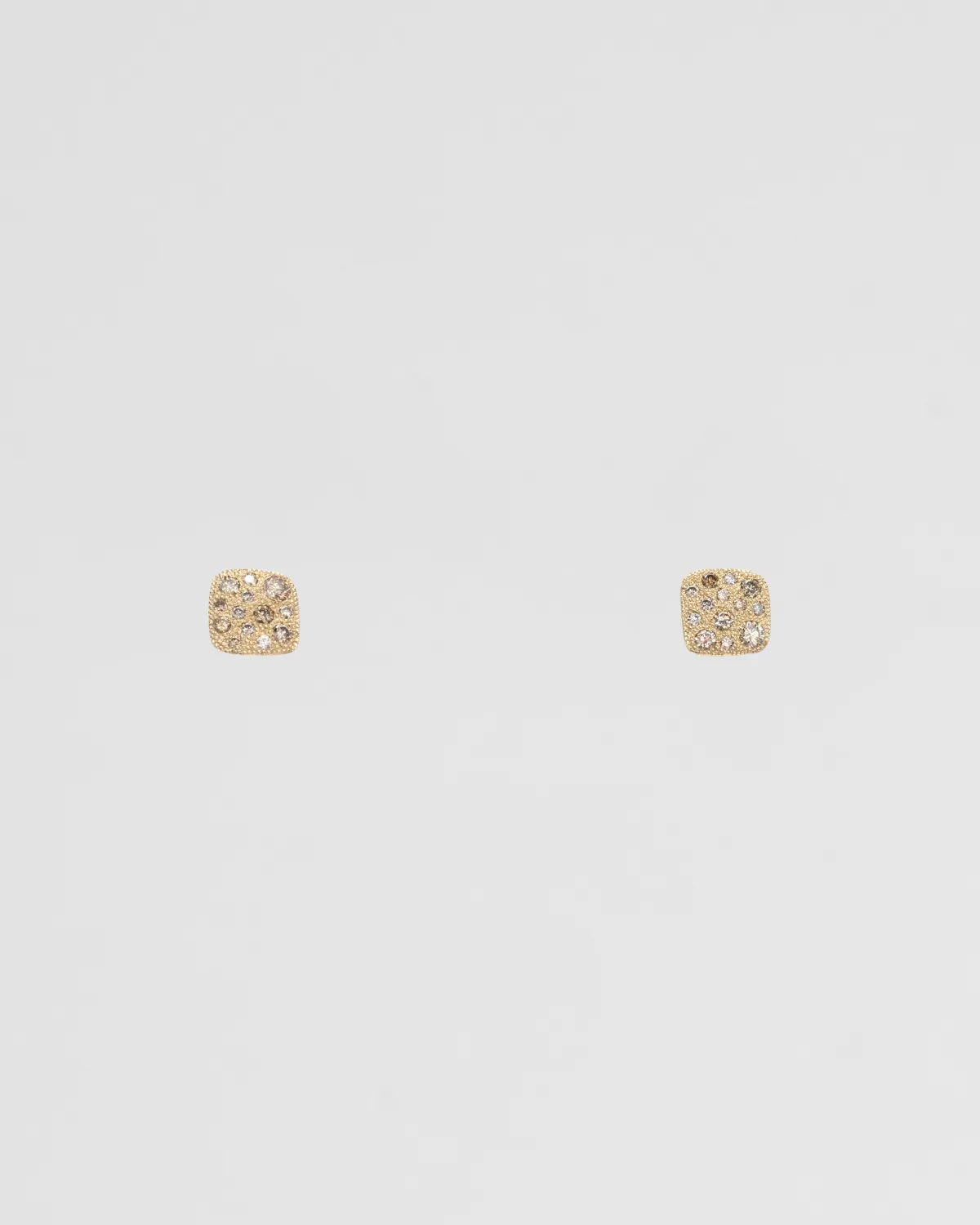 Серьги с мягкими квадратами из жёлтого золота с конъячными бриллиантами, переливающимися, как лучи солнца.