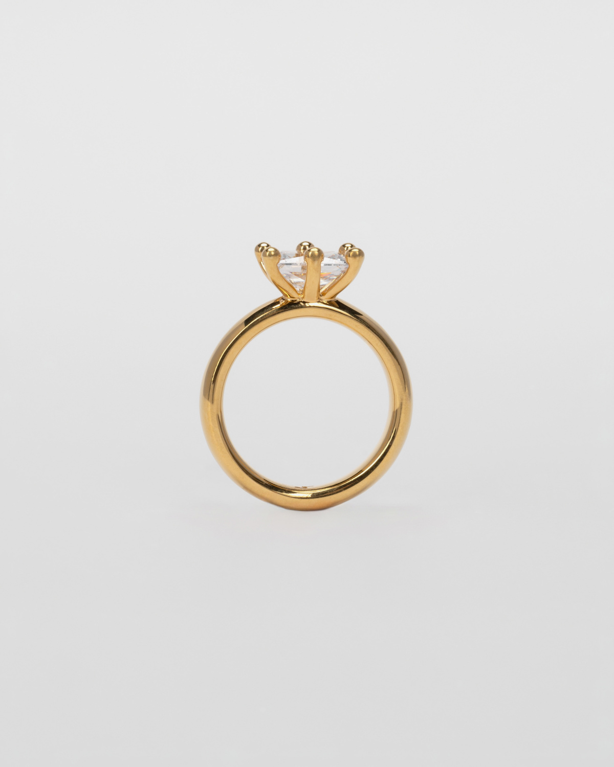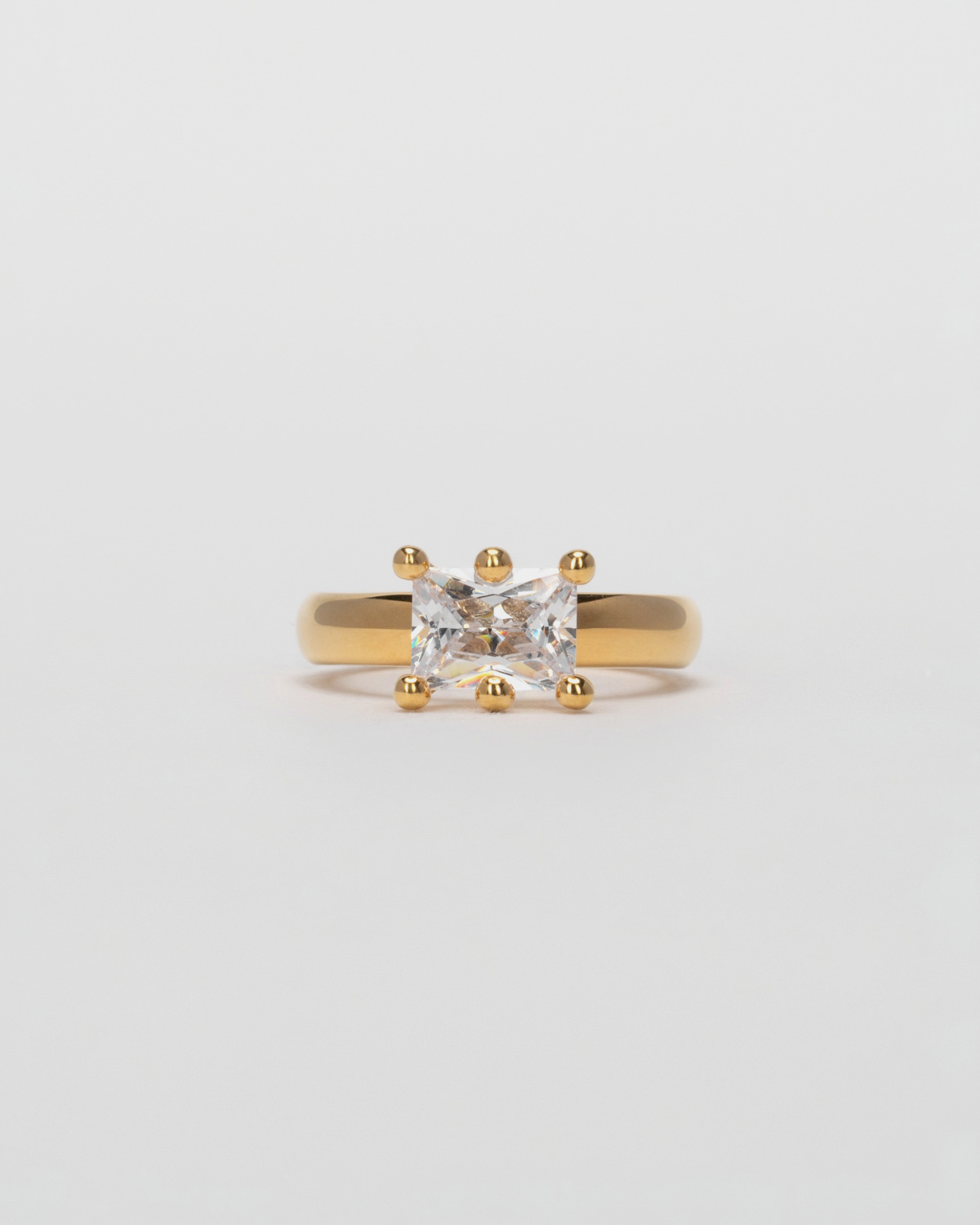 Кольцо с прозрачным фианитом о силе и хрупкости, первичной нежности, сильной глубине чувств. Станет вашим ярким акцентом на каждый день или для важных событий. Изделие также доступно со вставками цвета зелёный и макадамия. Рекомендуем сочетать с кольцами «Lapochka» и «Sparkle».