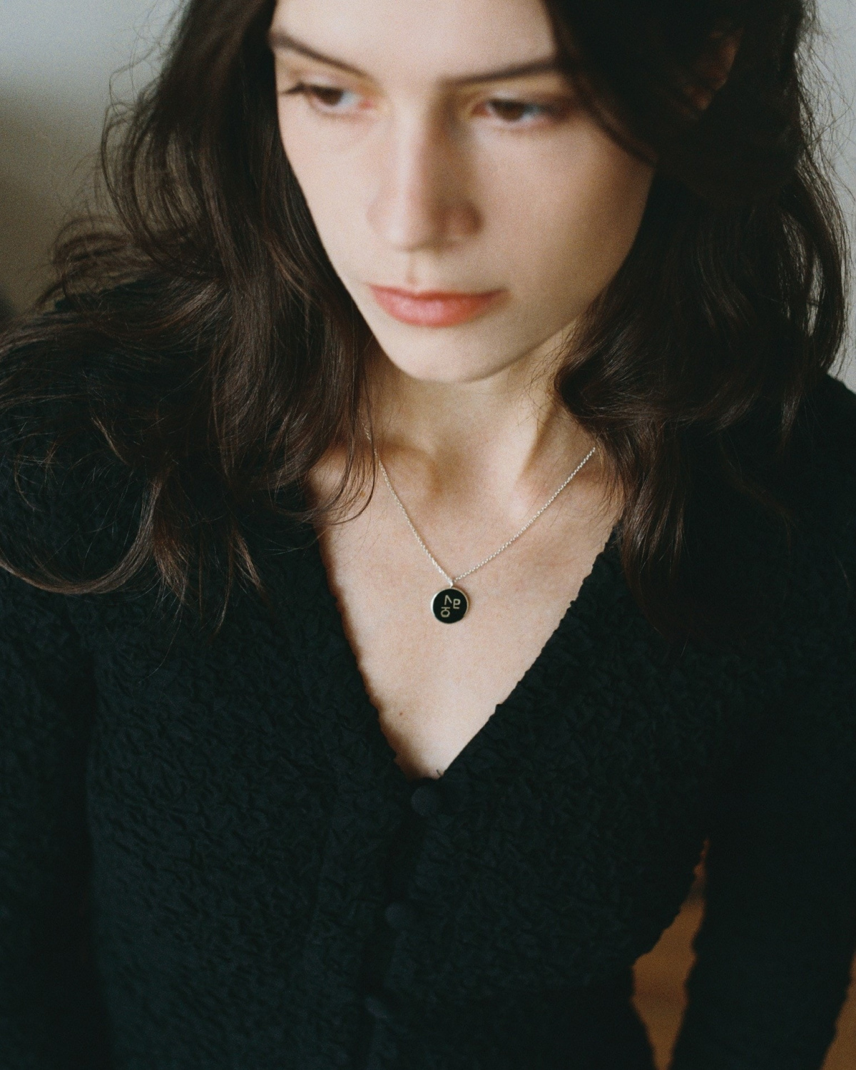 Медальон с чёрной эмалью и монограммой, созданной Владимиром Маяковским для Лили Брик. Ее инициалы «Л-Ю-Б» читаются как «бесконечное люблю». Когда-то она носила кольцо с этой монограммой, которое ей подарил Маяковский.