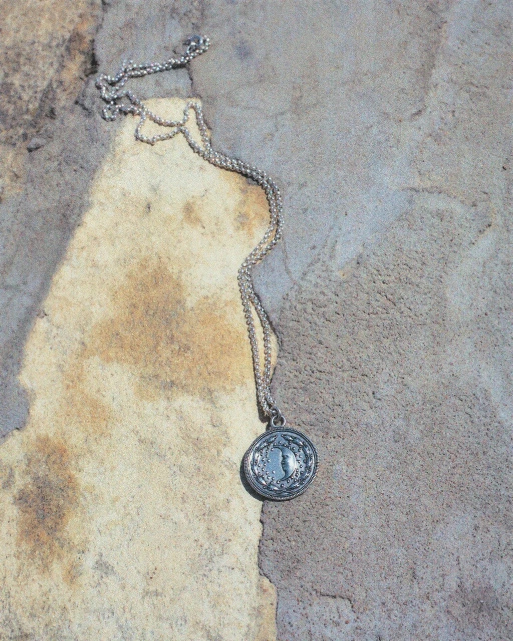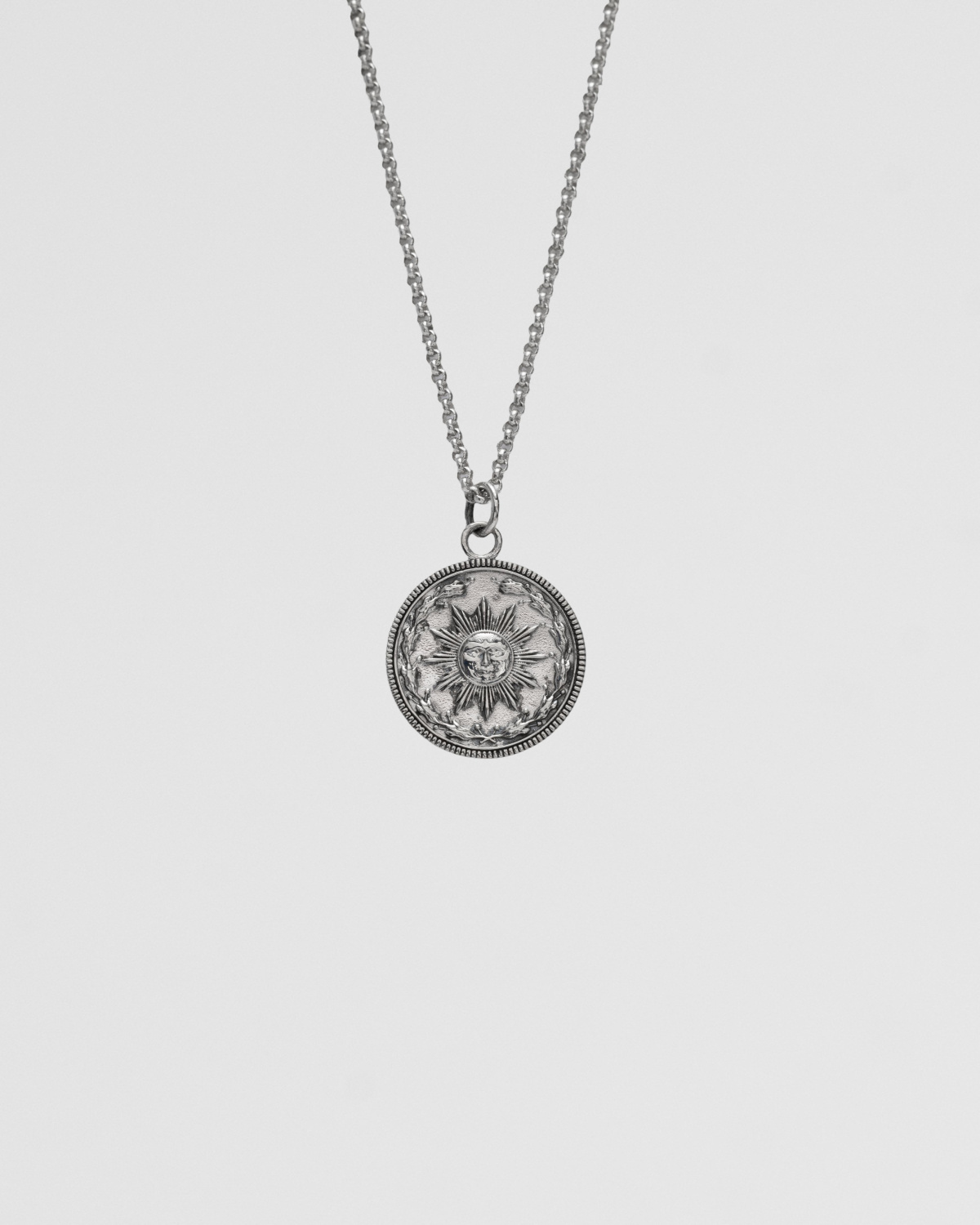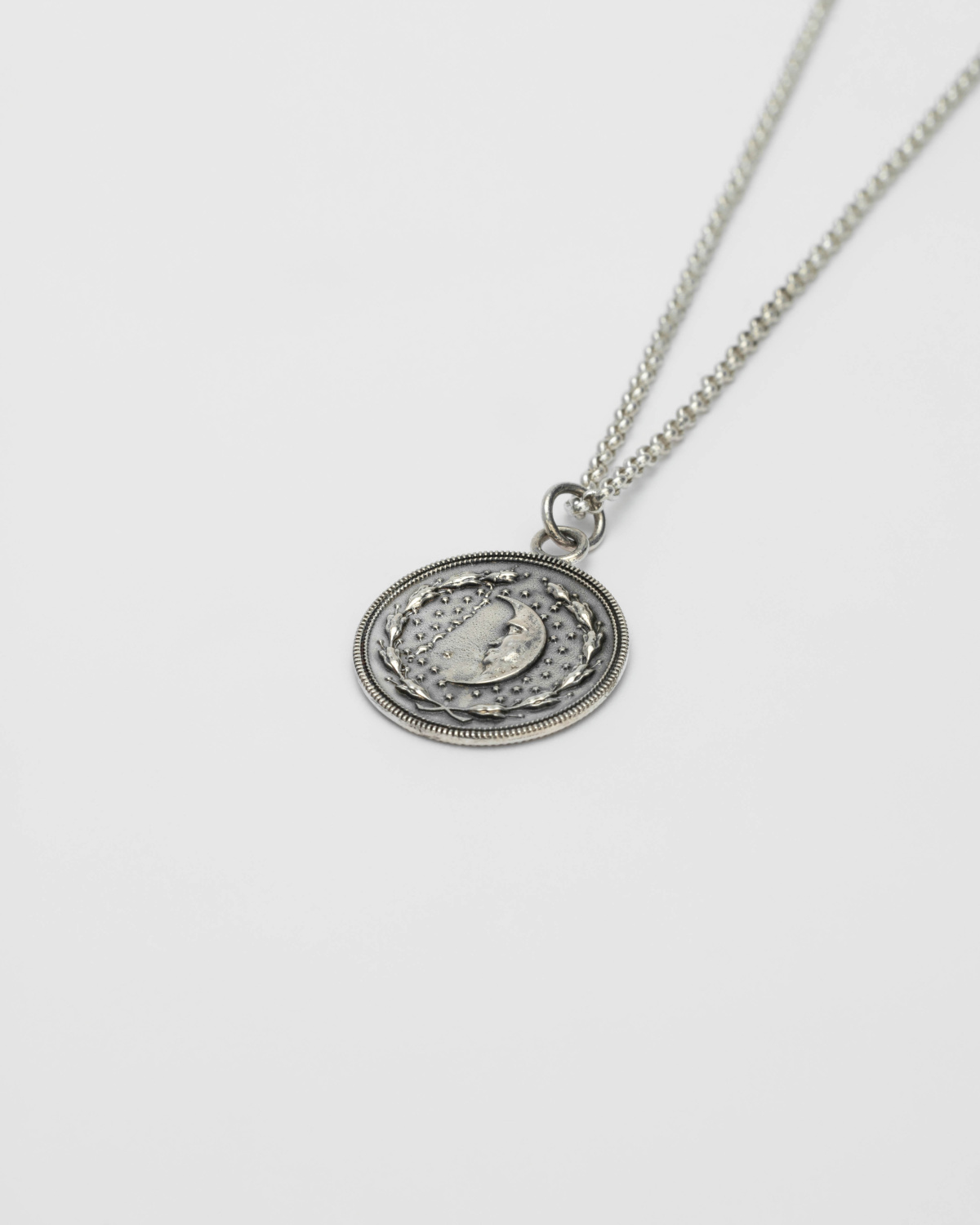 Рисунок этого украшения — реконструкция дореволюционного медальона, найденного дизайнером в Санкт-Петербурге в винтажной лавке. Он имеет две стороны, где изображены солнце и месяц со звездами, оба символа окружает дубовый венок.