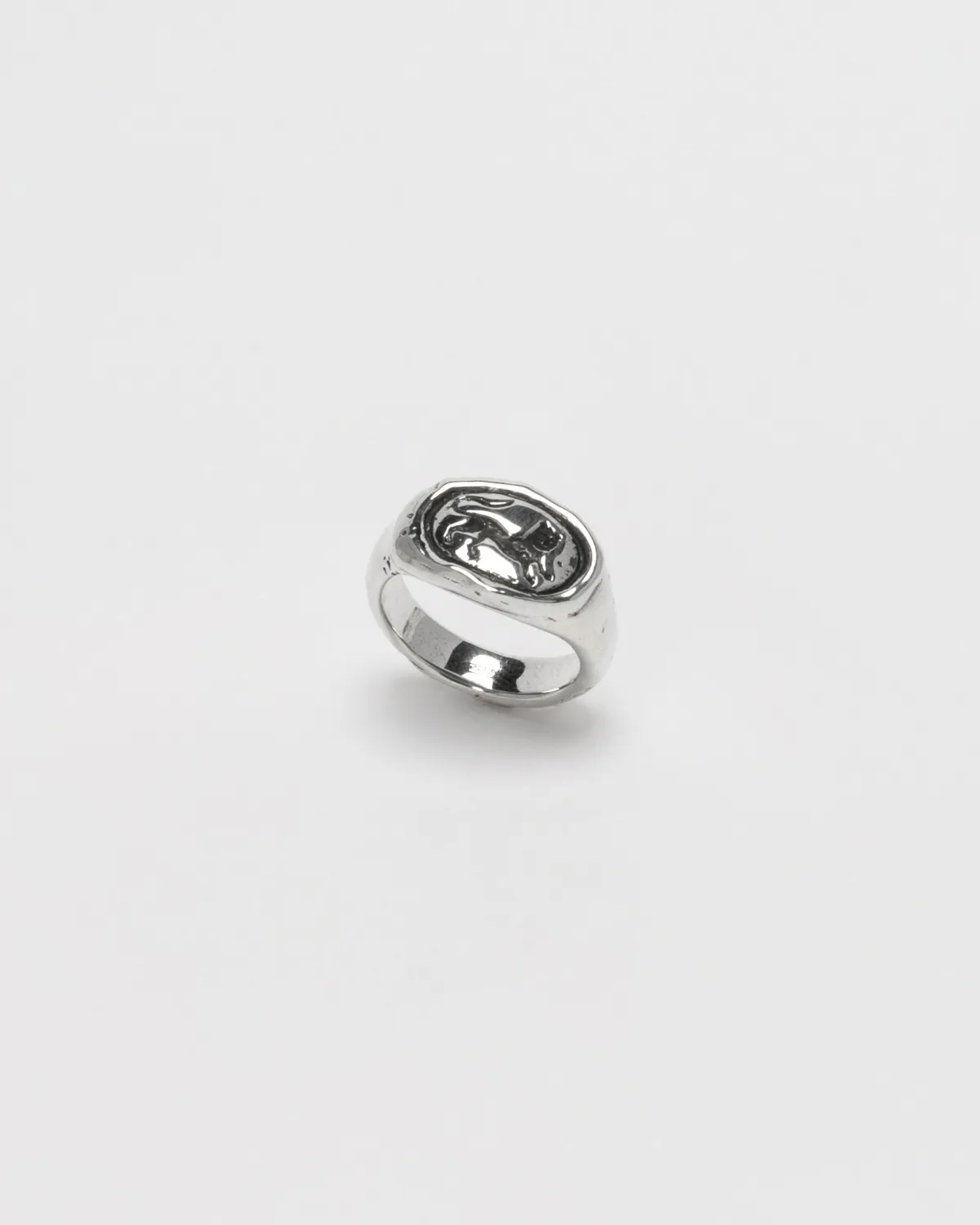 Кольцо-печатка с оплавленной фактурой и забавным средневековым тигром. Дань силе и нежности, основательности и игривости. Почему бы не сочетать всё это в одном?