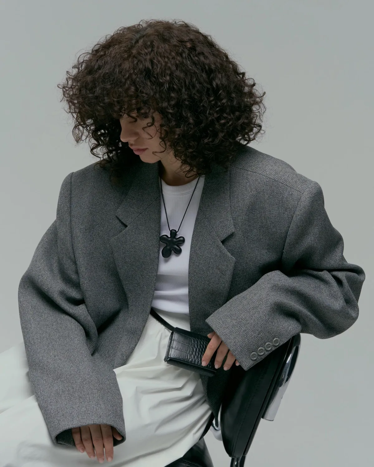 Подвеска Flower из керамики на хлопковом шнурке с жемчужинами на концах.