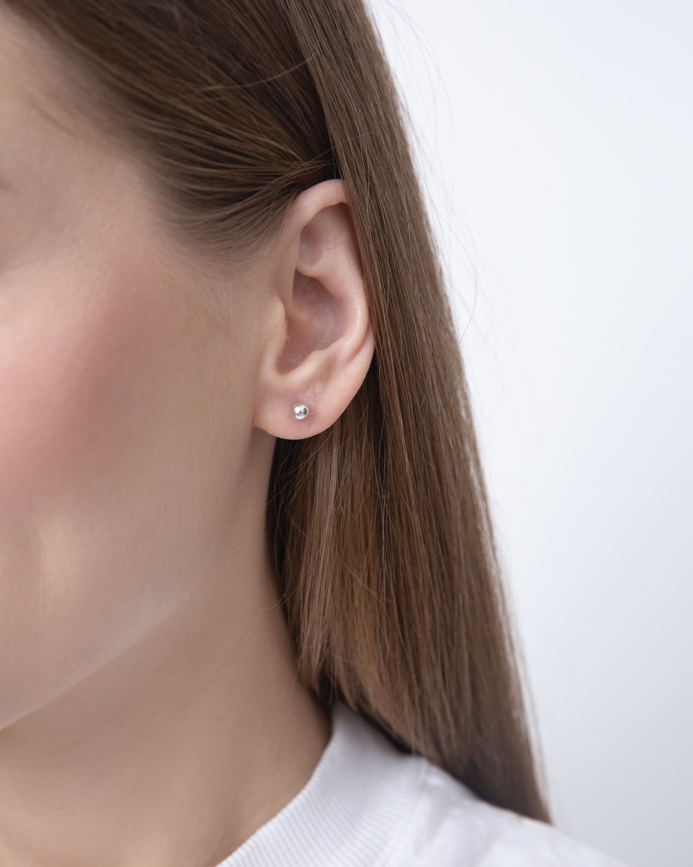 Базовые серебряные пусеты-шарики для дополнения ваших сетов с глянцевым финишем. Комфортны для ежедневной носки. Тип застёжки — гвоздик. Также доступны в размере M.