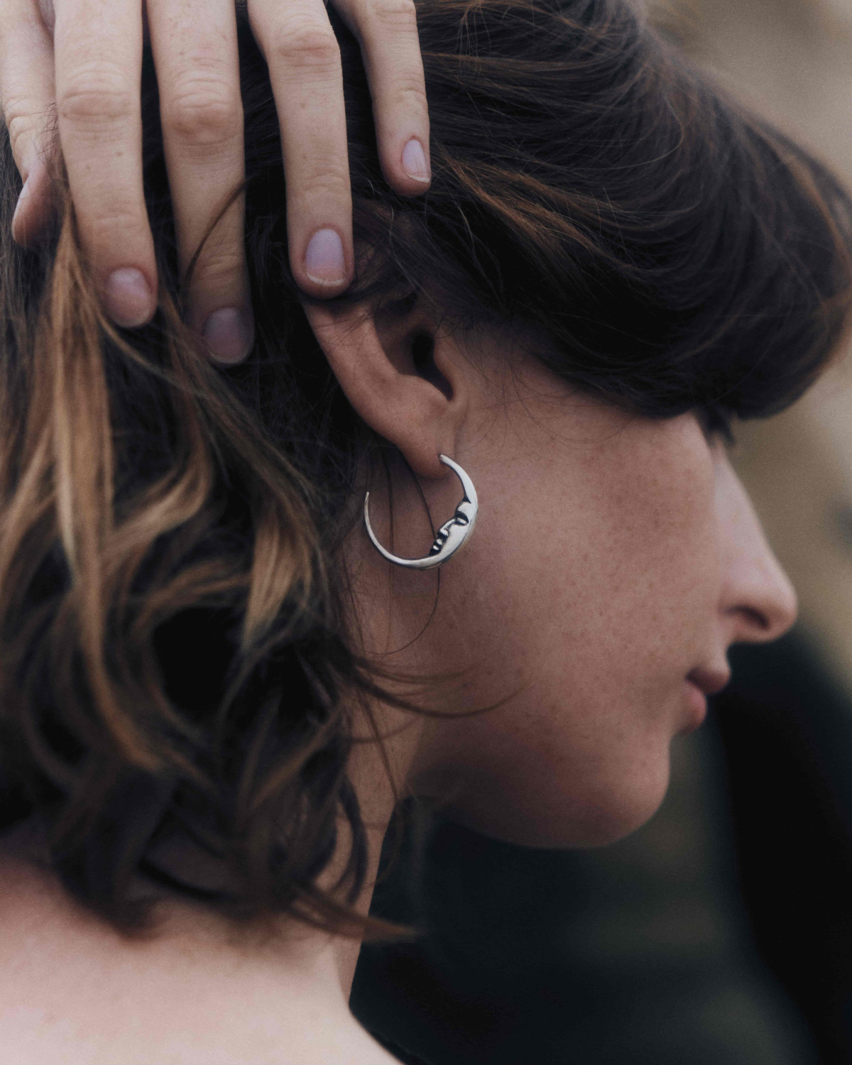 Серьги с секретом MOONFACE BIG — спереди выглядят как простые кольца, а сбоку глядят лунным ликом.