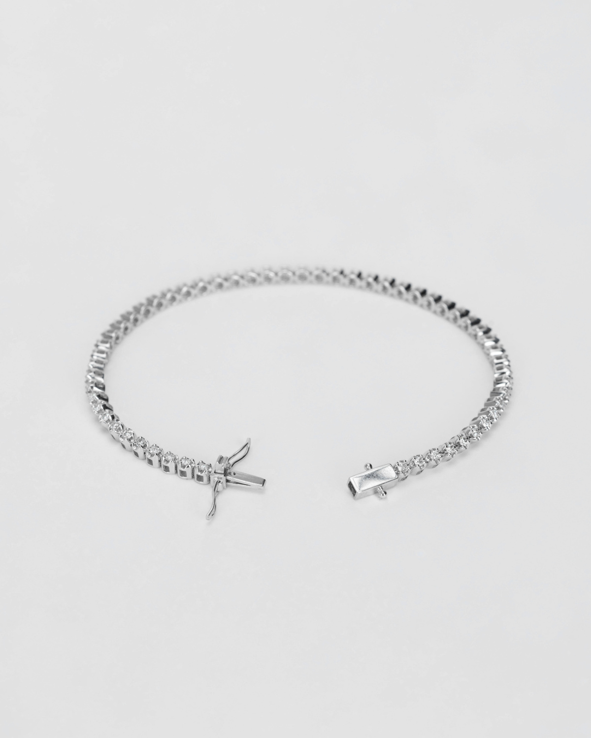 Классический теннисный браслет из белого золота с муассанитами. Непрерывная изящная линия камней, известная как "браслет вечности" символизирует вечную любовь, доверие и преданность, потому изделие станет прекрасным подарком на годовщины и другие важные события. Рекомендуем сочетать с кольцом-дорожкой с крупными бриллиантами этого же бренда.