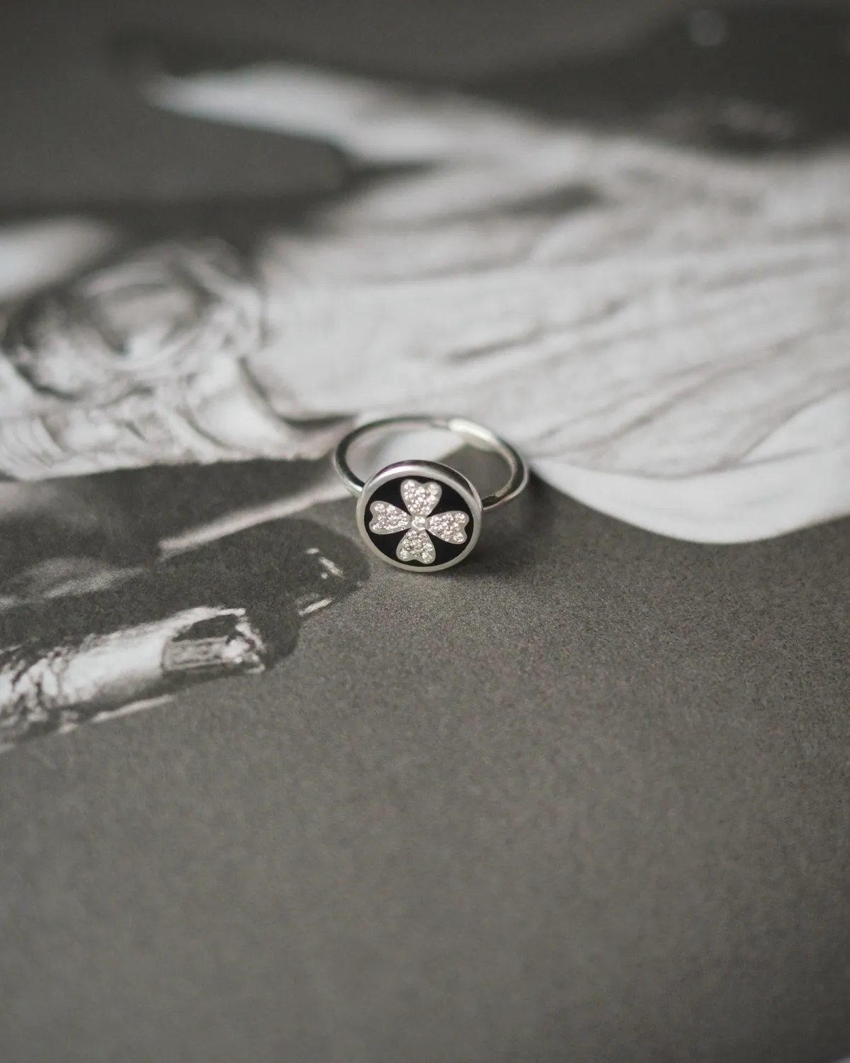 Кольцо Клевер с фианитами