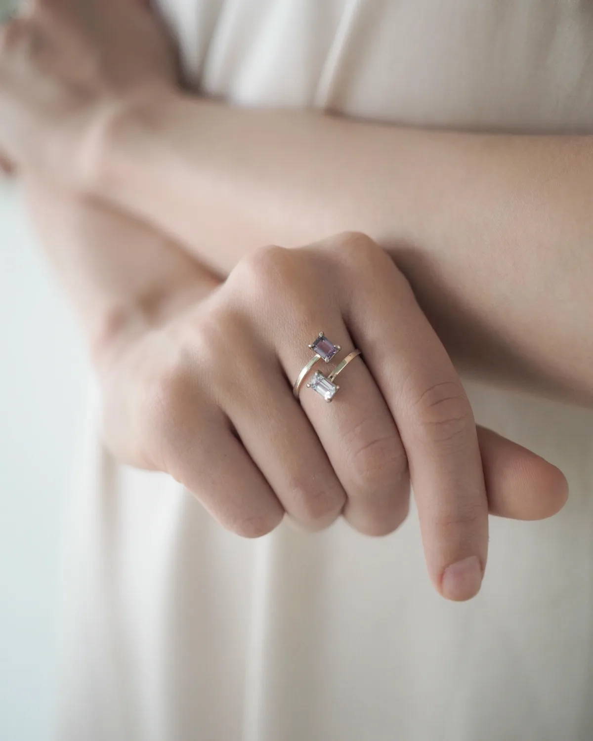 Разомкнутое кольцо из белого золота со шпинелью лавандовых оттенков. Кольцо изготовлено вручную в единственном экземпляре.