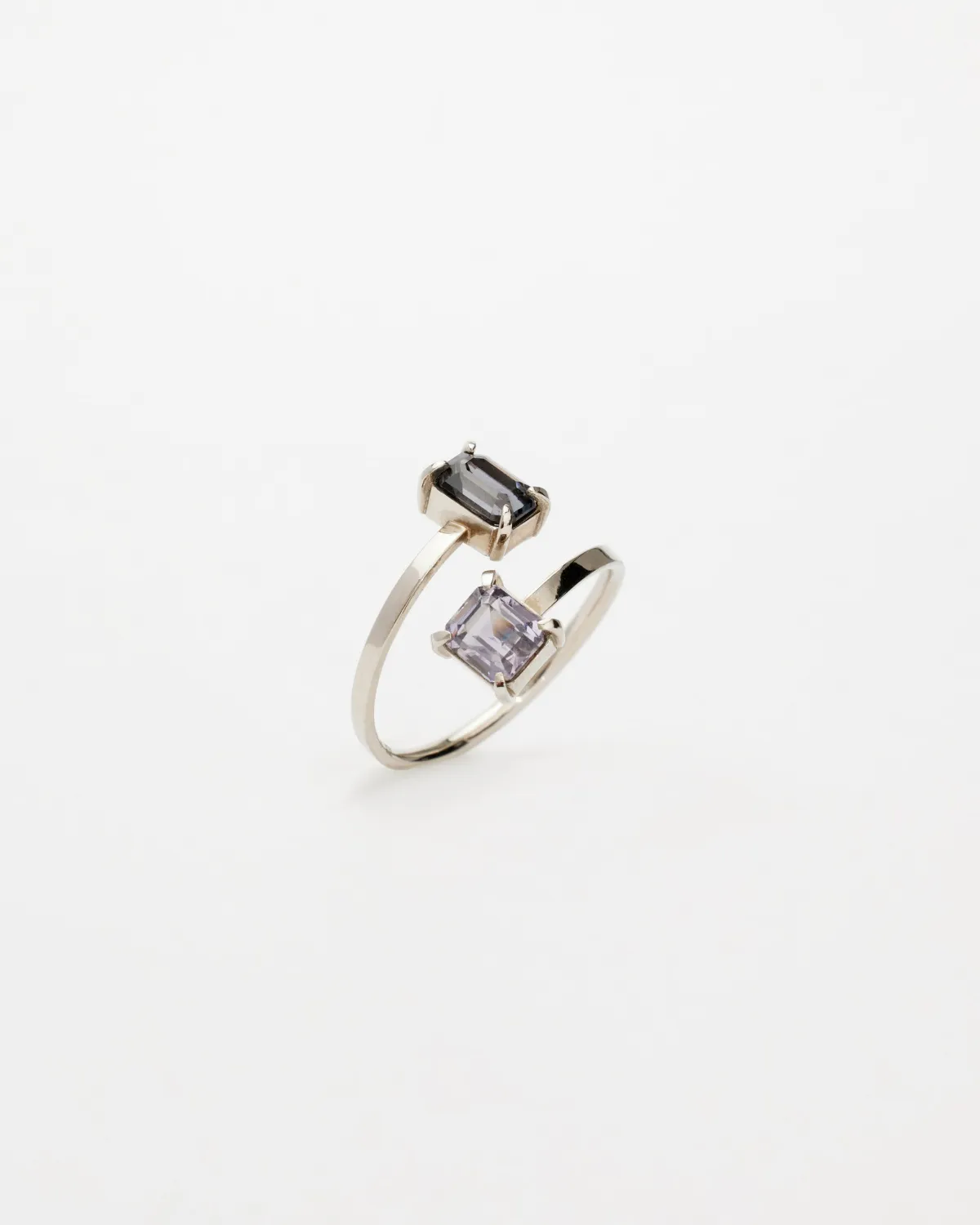 Разомкнутое кольцо из белого золота со шпинелью лавандовых оттенков. Кольцо изготовлено вручную в единственном экземпляре.