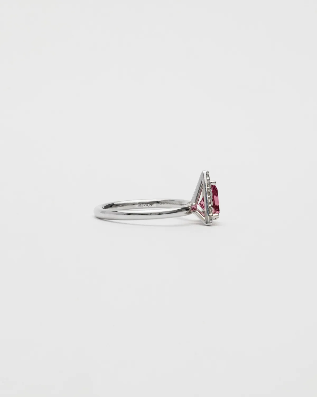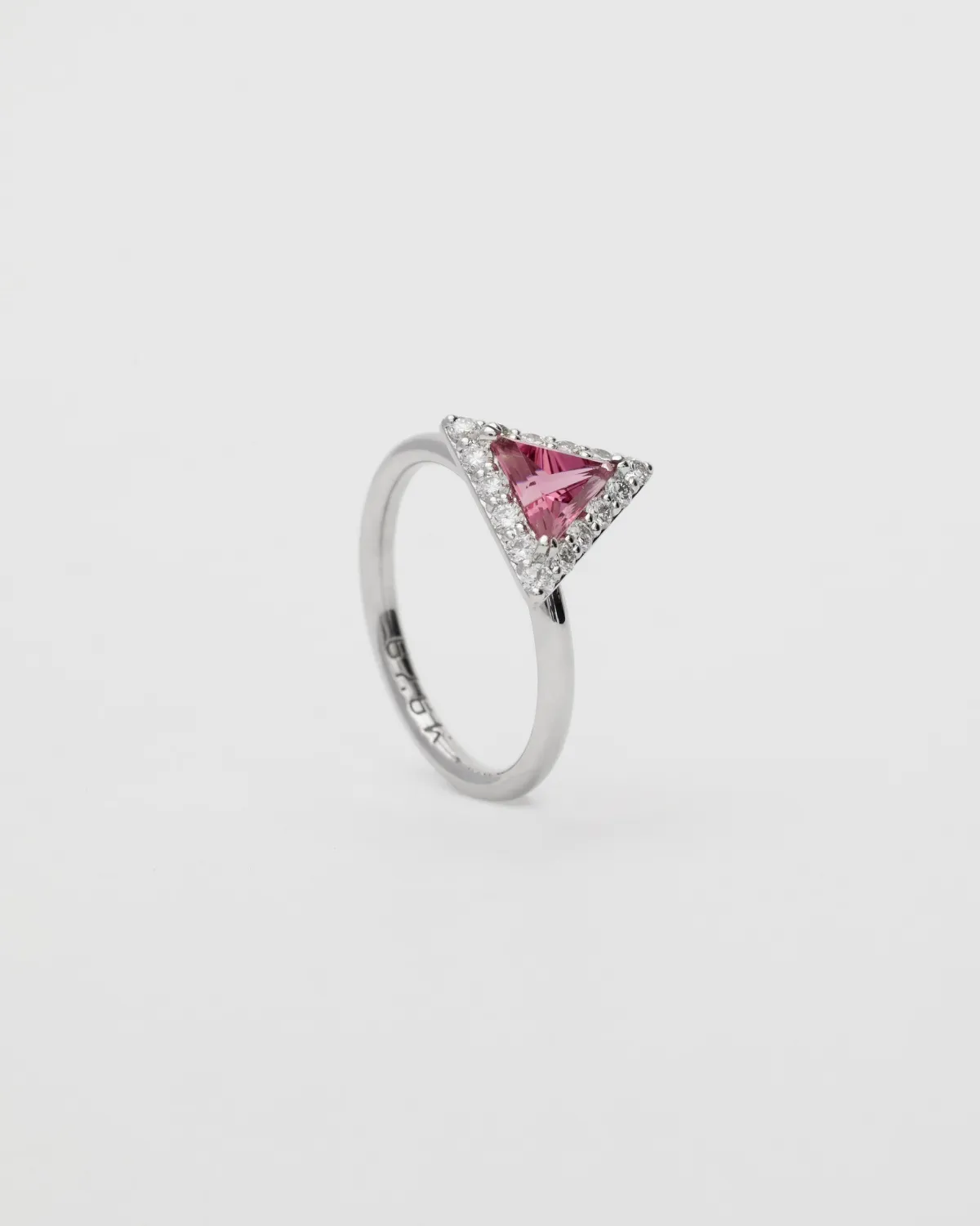 Кольцо из 18-каратного белого золота с бриллиантами и розовым турмалином огранки Maya Cut.