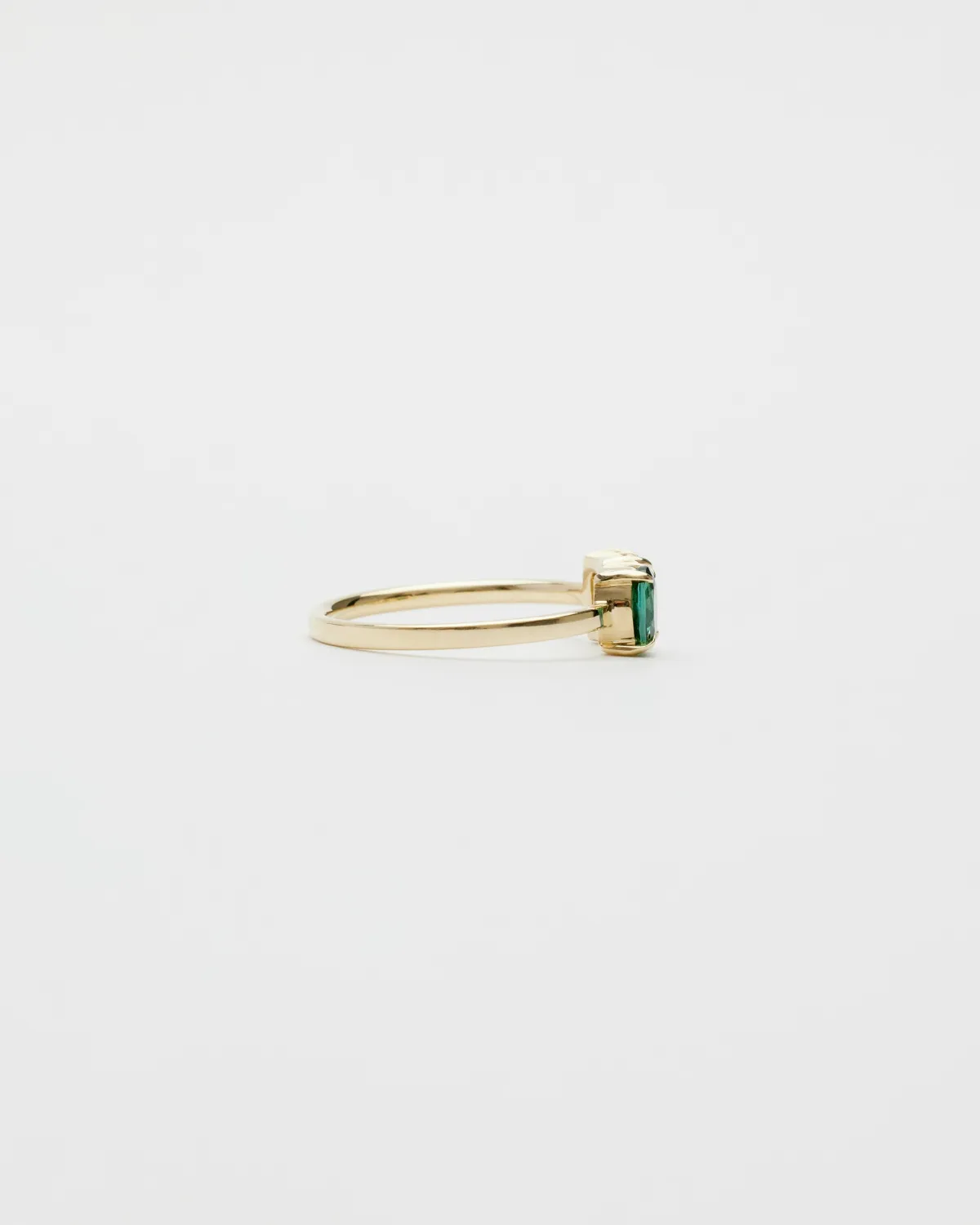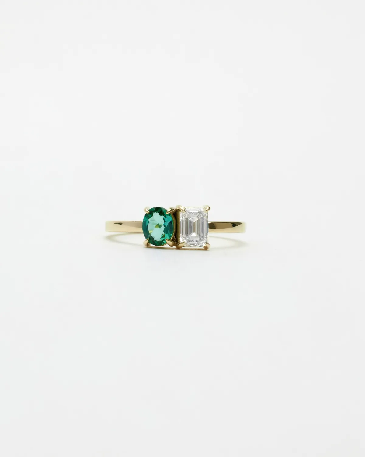 Изящное кольцо из лимонного золота с бриллиантом изумрудной огранки и турмалином. Создано вручную в единственном экземпляре. Бриллиант в данном кольце имеет сертификат международной лаборатории GIA №2537166294.