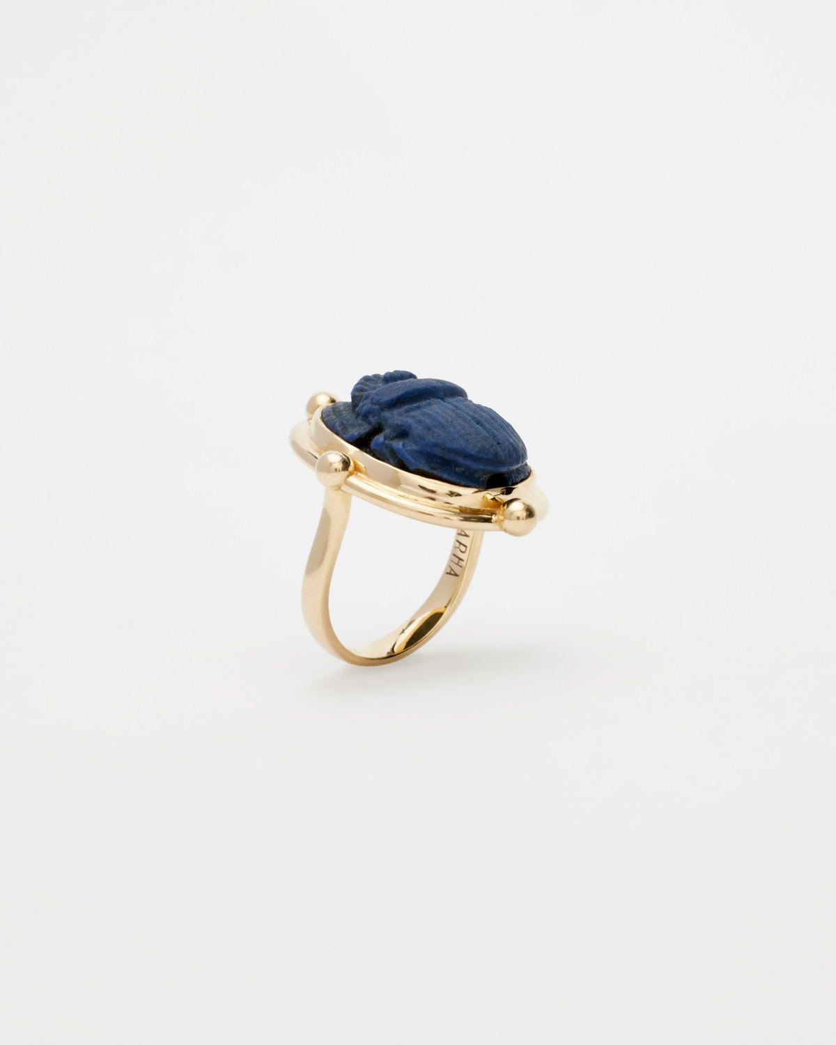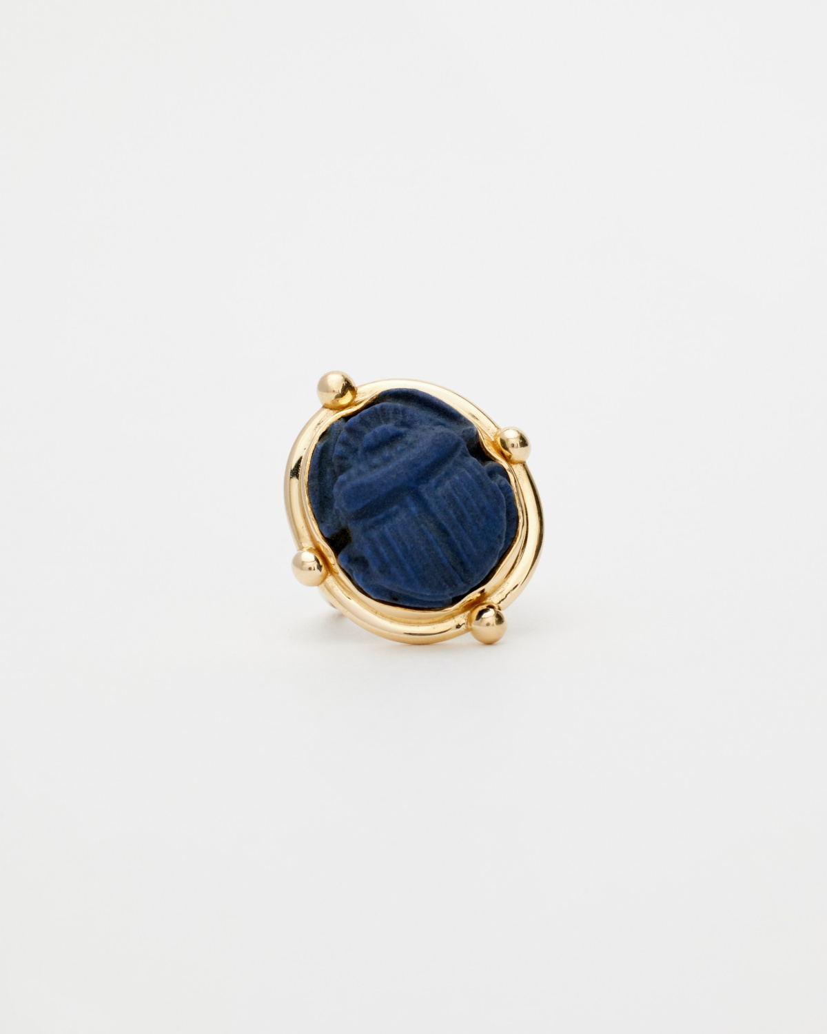 Кольцо, которое могут выполнить для вас под заказ с египетским скарабеем, которому уже более 2000 лет. Время и химические процессы в земле сделали поверхность фаянса «бархатной», делая его визуально ещё интереснее и приятнее тактильно.