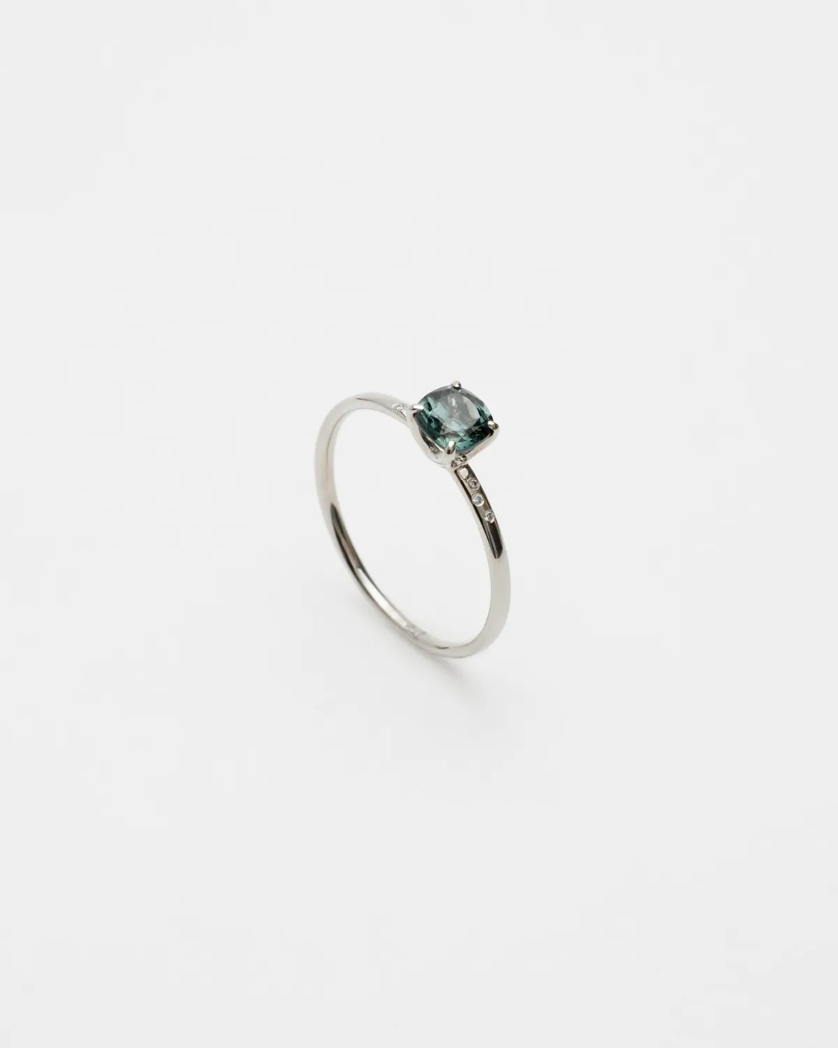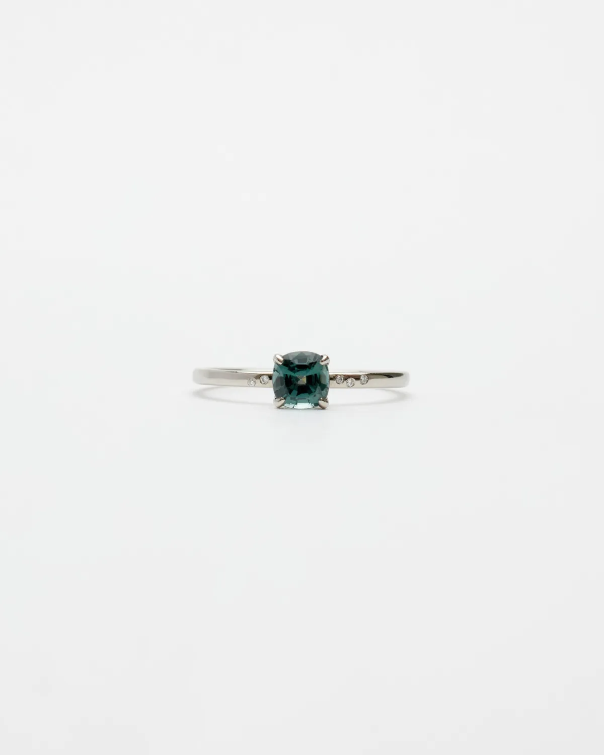 Изящное кольцо из белого золота со шпинелью и россыпью бриллиантов. Создано вручную в единственном экземпляре.