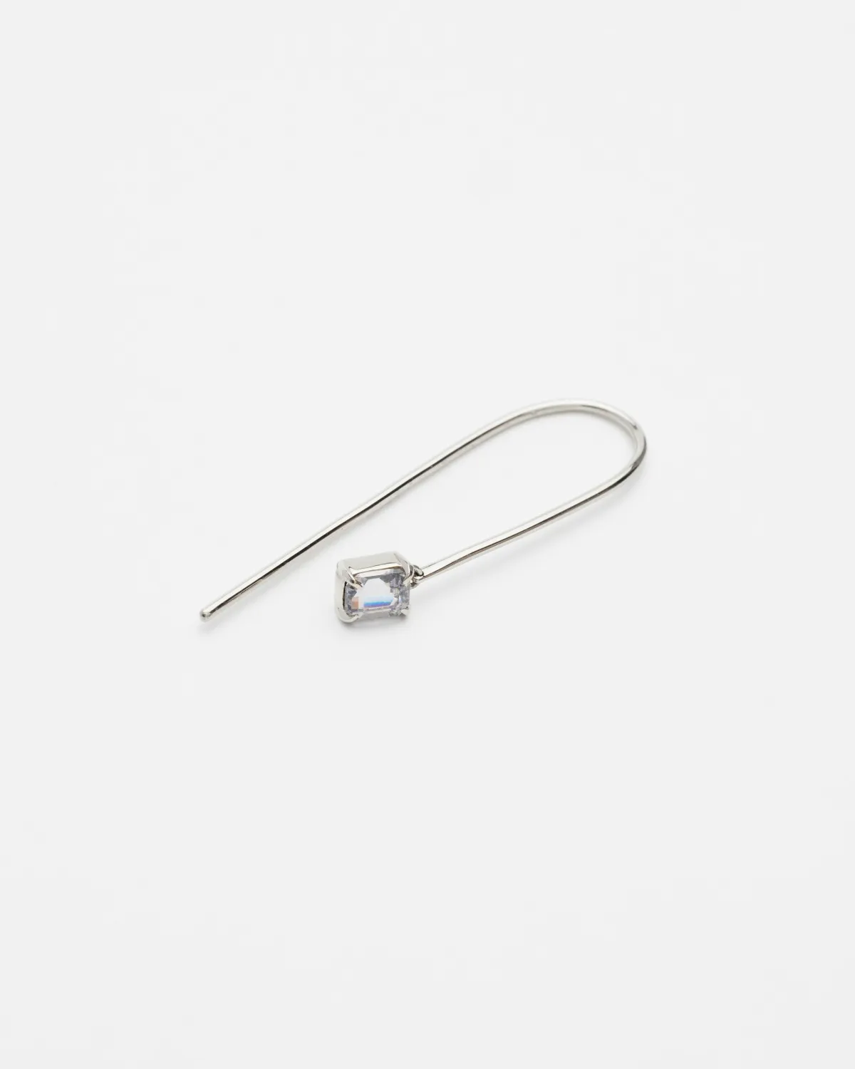 Моносерьга из белого золота с нежно-серой шпинелью, изготовленная вручную. С этим украшением мы предлагем собрать ассиметричную пару, дополнив серьгу пусетой в тон или дублируя протяжкой из этой же коллекции.