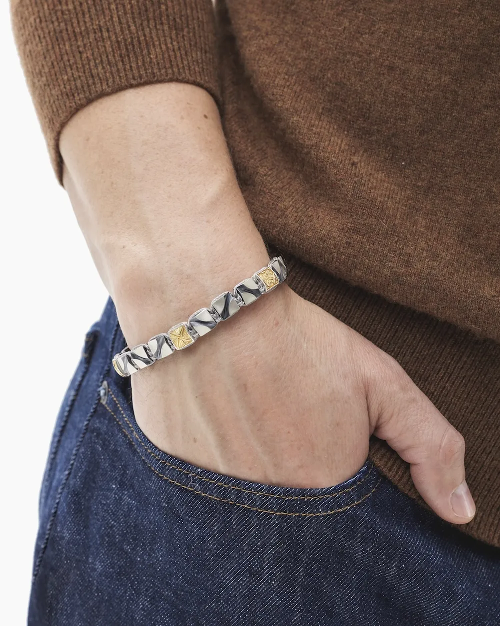 Лаконичный дизайн браслета органично сочетается с часами и другими аксессуарами, подчеркивая утончённый вкус и внимание к деталям.