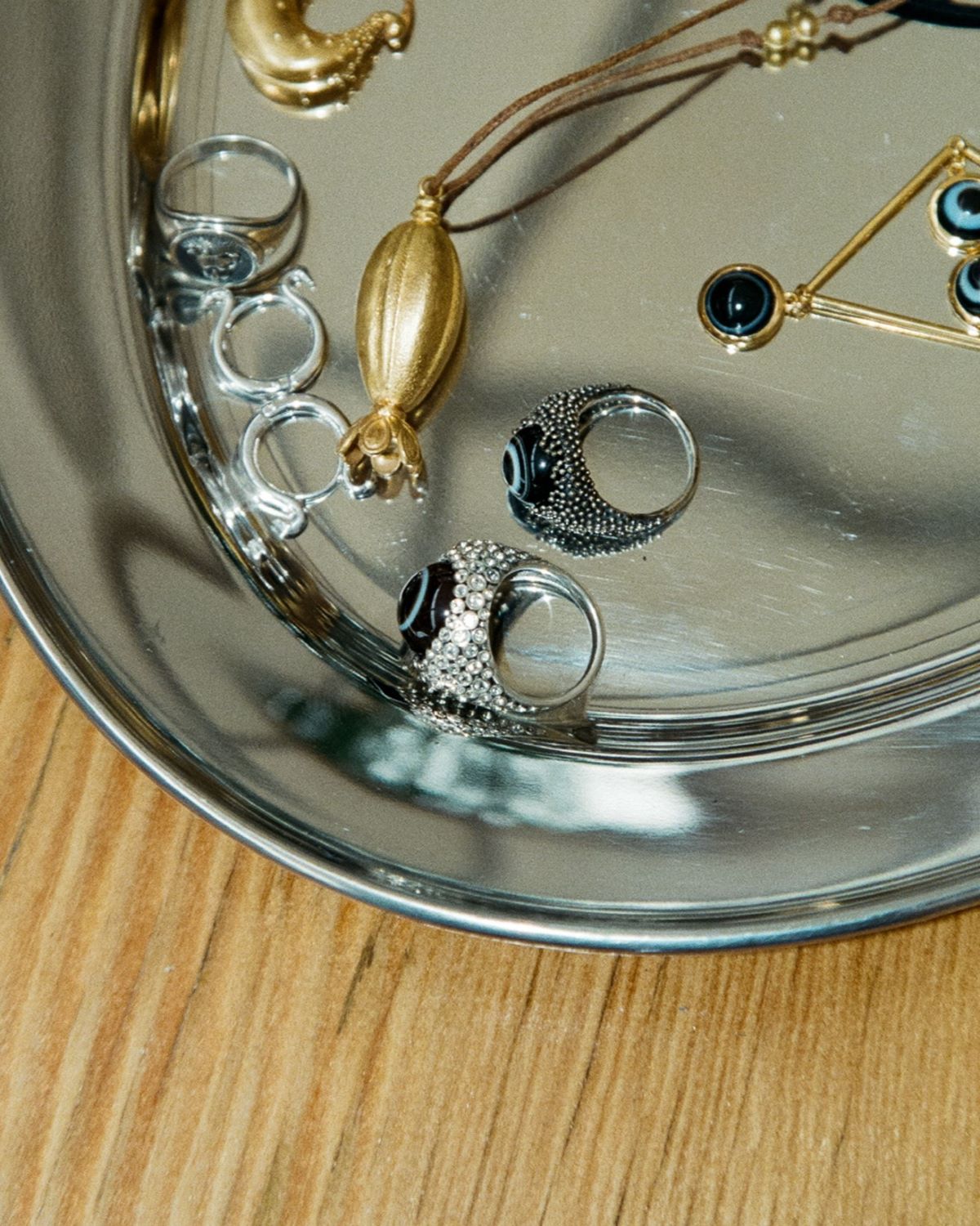 Коллекция Argus стала редким собранием украшений, посвященной древнему мифу о многоглазом великане Аргусе и Ио, агаты с рисунком глаза дизайнер Игорь Геращенко собирал для этой коллекции в течении нескольких лет, рисунок каждого камня уникален. Если вы хотите заказать кольцо с определённым камнем, напишите нашим консультантам в чат перед оформлением заказа, мы подскажем, в наличии ли он.