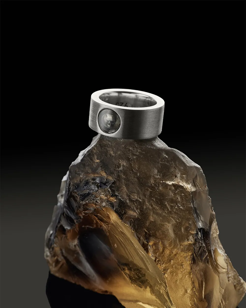 Рыцарская геральдика, пиратская символика всегда транслировали презрение смерти, силу, смелость, свободу от правил. Байкеры и просто мотоциклисты считают череп оберегом. В этом серебряном полновесном кольце череп скрыт за линзой из раухтопаза или дымчатого кварца.