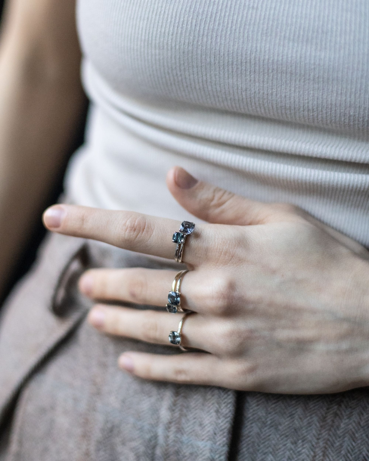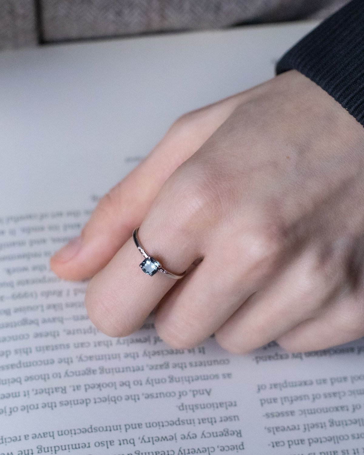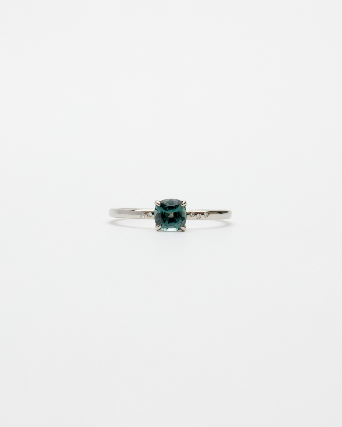 Изящное кольцо из белого золота со шпинелью и россыпью бриллиантов. Создано вручную в единственном экземпляре.