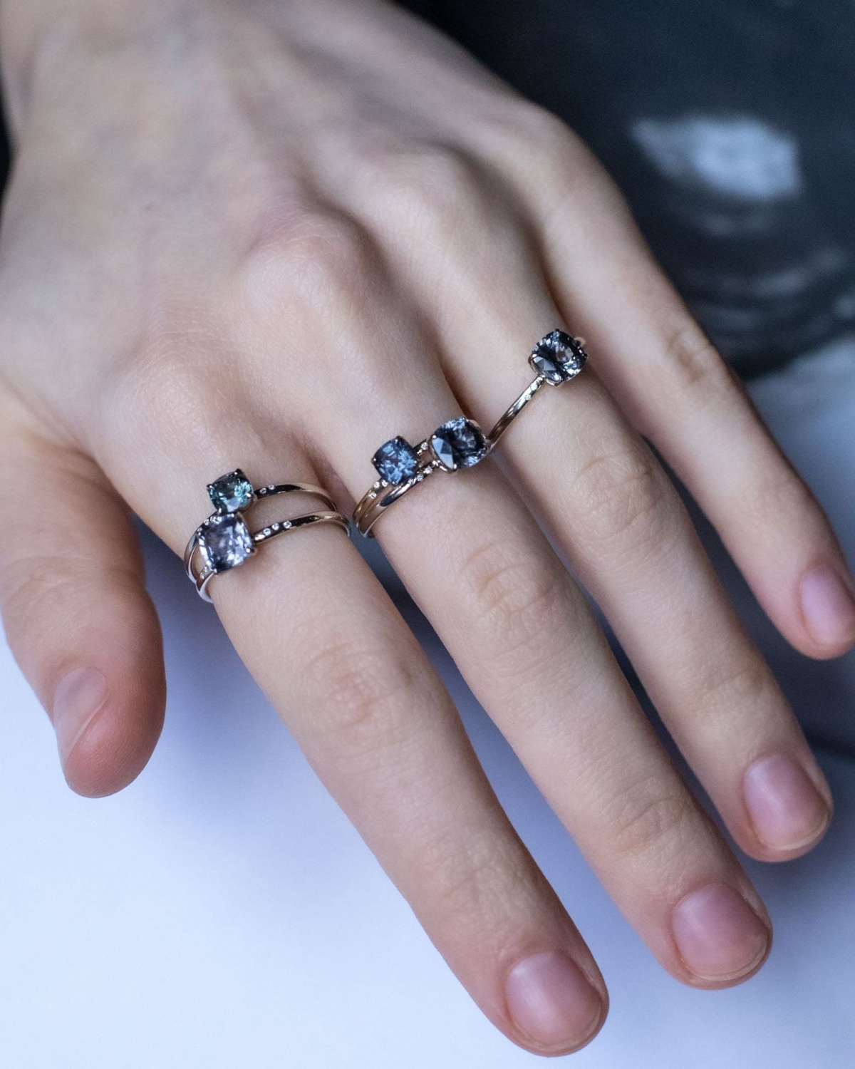 Изящное кольцо из лимонного золота со шпинелью и россыпью бриллиантов. Создано вручную в единственном экземпляре.