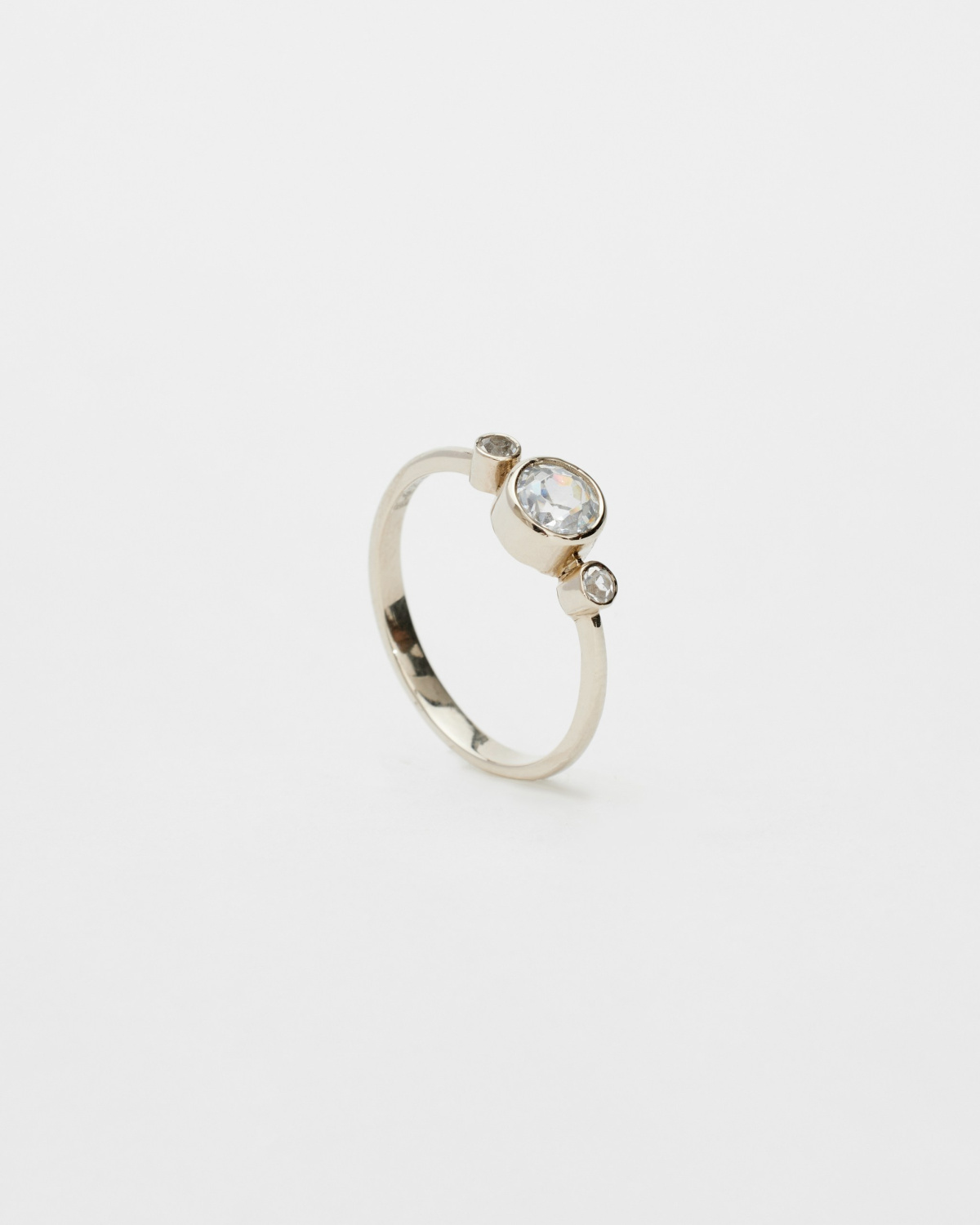 Изящное кольцо с тремя сияющими топазами из белого золота, изготовленное вручную в единственном экземпляре. Размер может быть откорректирован специально для вас, для оформления этой услуги свяжитесь с нашими консультантами.