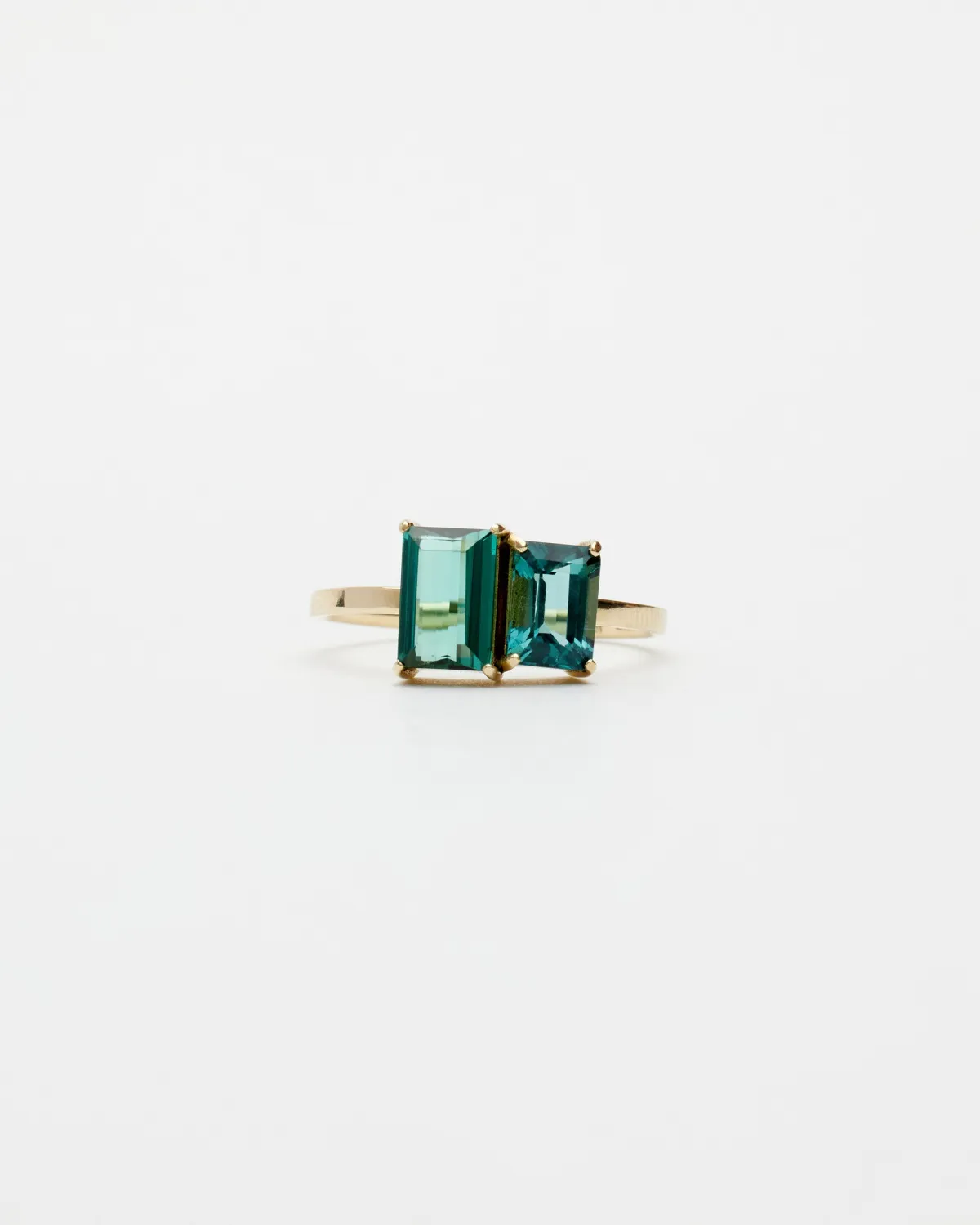 Изящное кольцо из лимонного золота с турмалинами изумрудной огранки. Создано вручную в единственном экземпляре.
