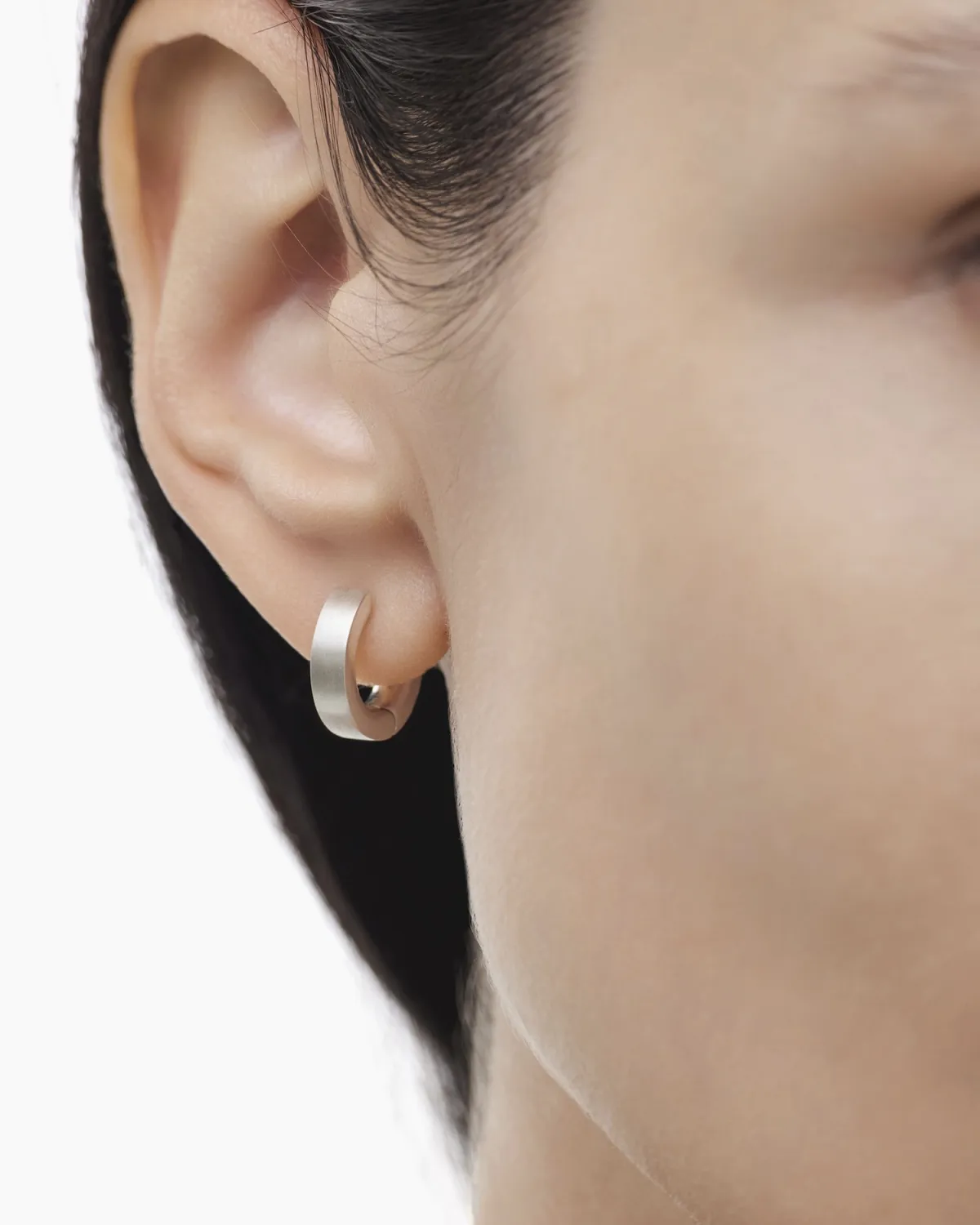Выполнены из полновесного серебра 925 пробы, отполированного до глянца внутри и матового сатинирования снаружи. Внешний диаметр серьги - 14мм, внутренний - 8 мм, толщина - 3мм.