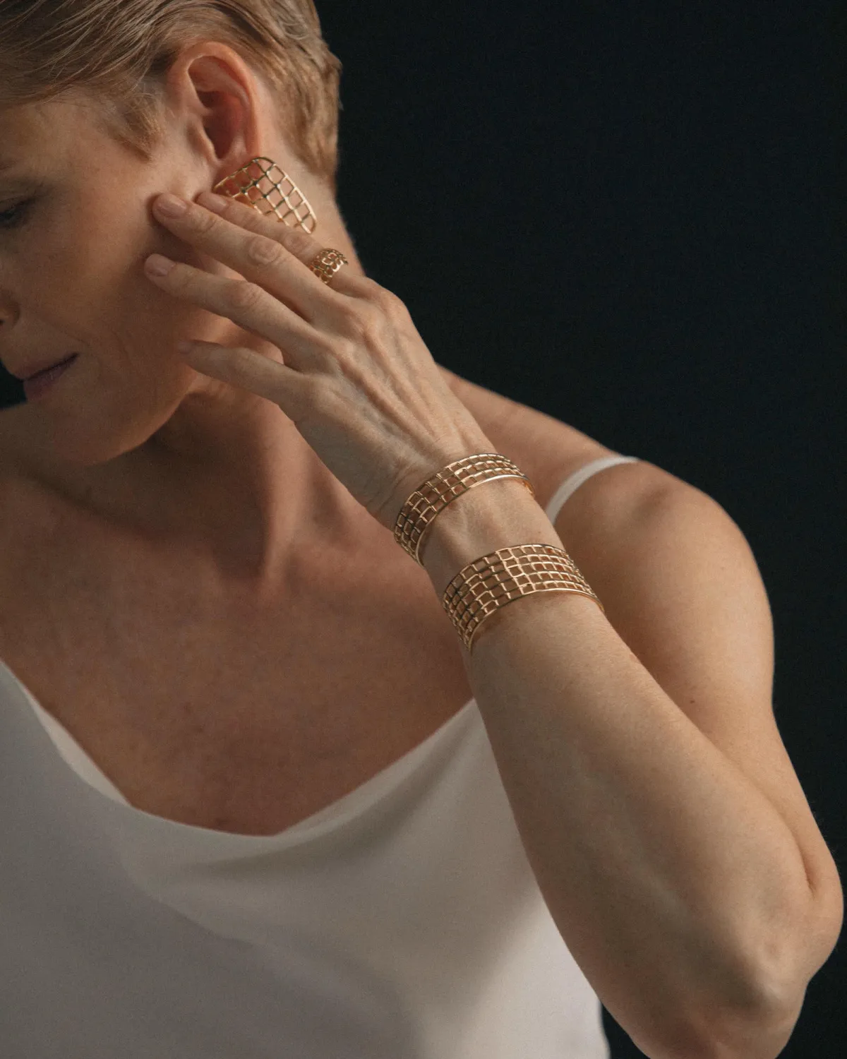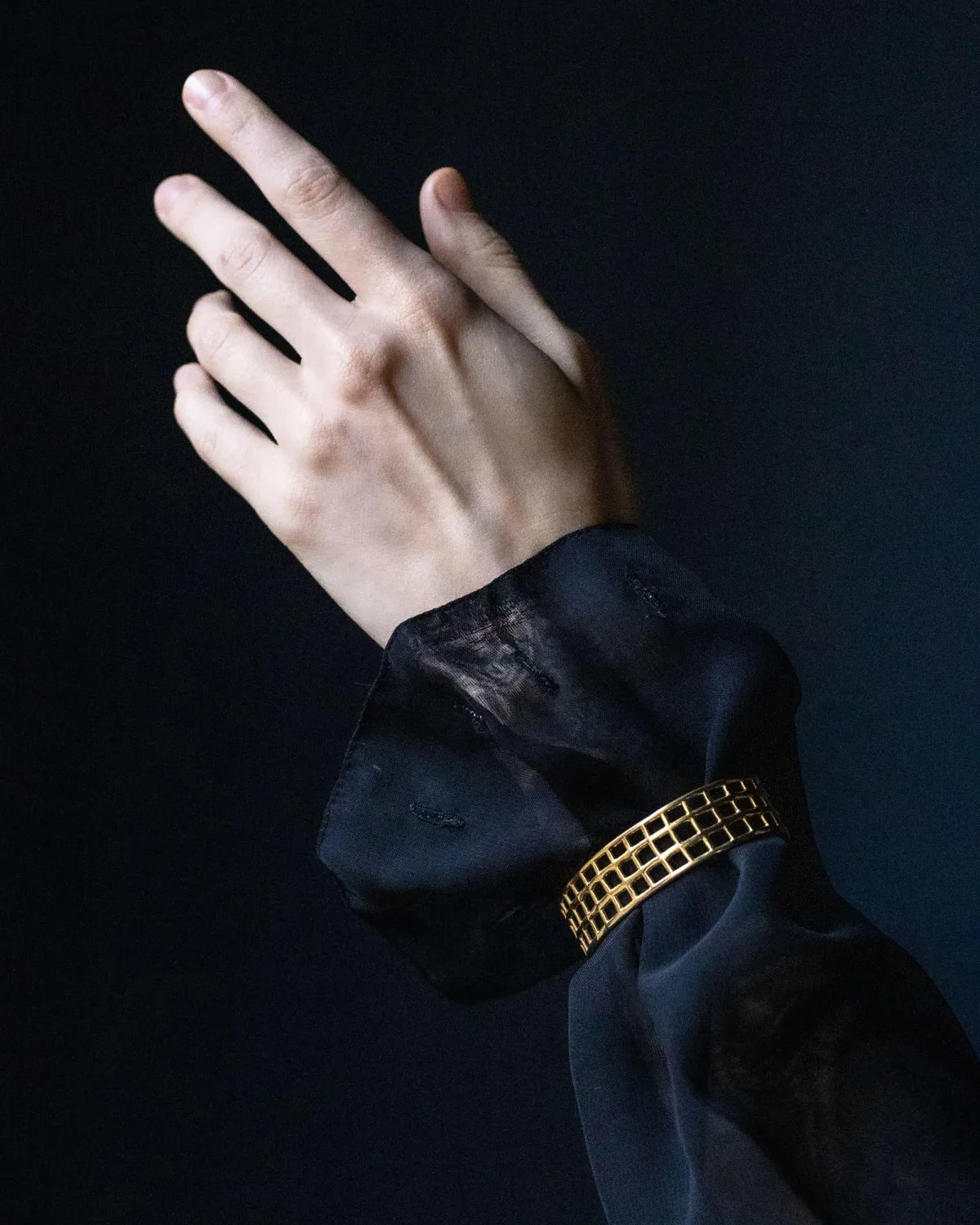 Коллекция, вдохновлённая древним африканским государством Ашанти. Каждое украшение несёт в себе скрытый смысл или сообщение, которое раскрывается самим владельцем. Ручная работа. Рекомендуем дублировать этот жёсткий браслет и носить его поверх рубашки, на одной или разных руках.