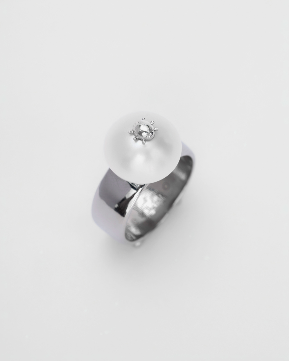 Кольцо – арт-объект с крупной речной жемчужиной. Coleoptera (в переводе с латинского означает «жесткокрылые») – семейство насекомых, известное как ювелирные жуки.
