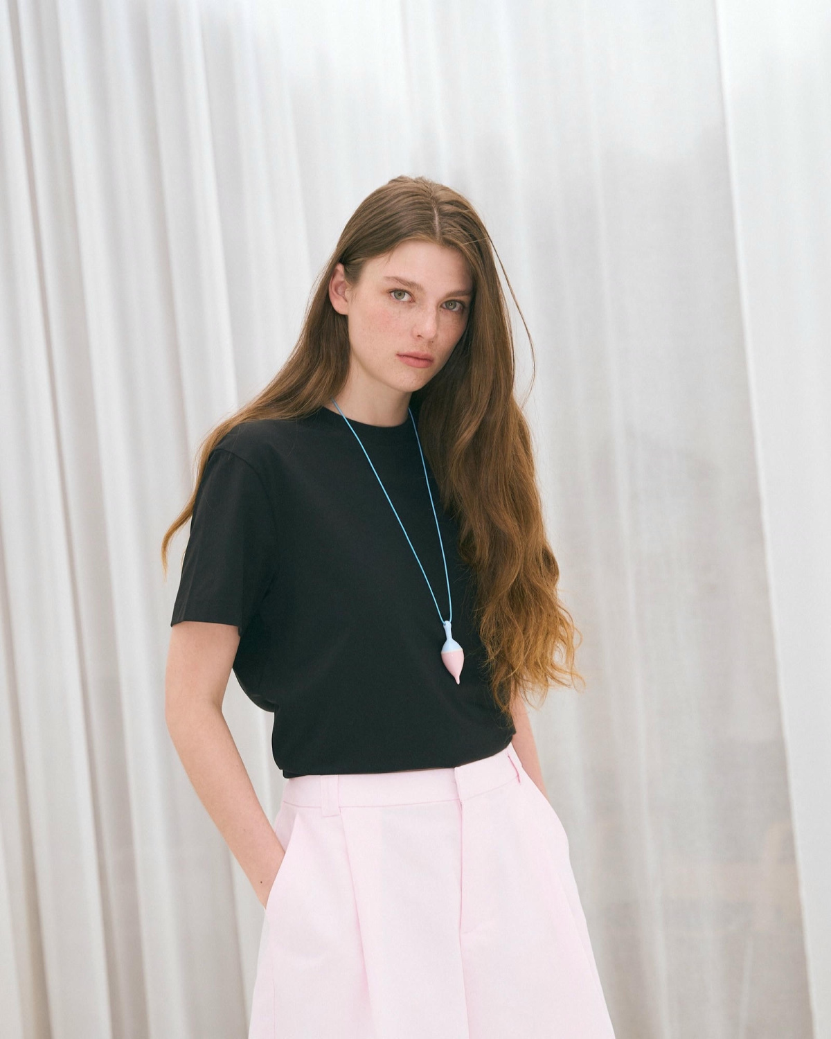 Подвеска Float из керамики на вощеном шнурке с жемчужинами на концах.