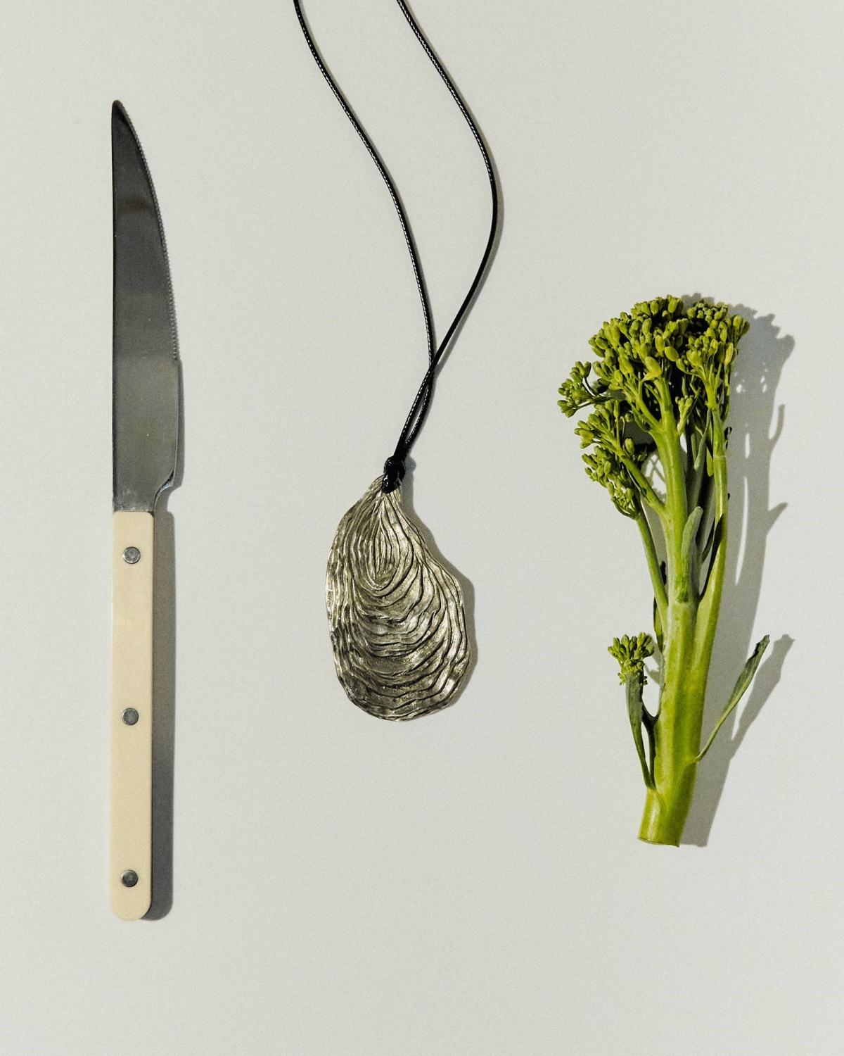 Подвеска Oyster из белой латуни на вощеном шнурке с бронзовыми жемчужинами на концах.