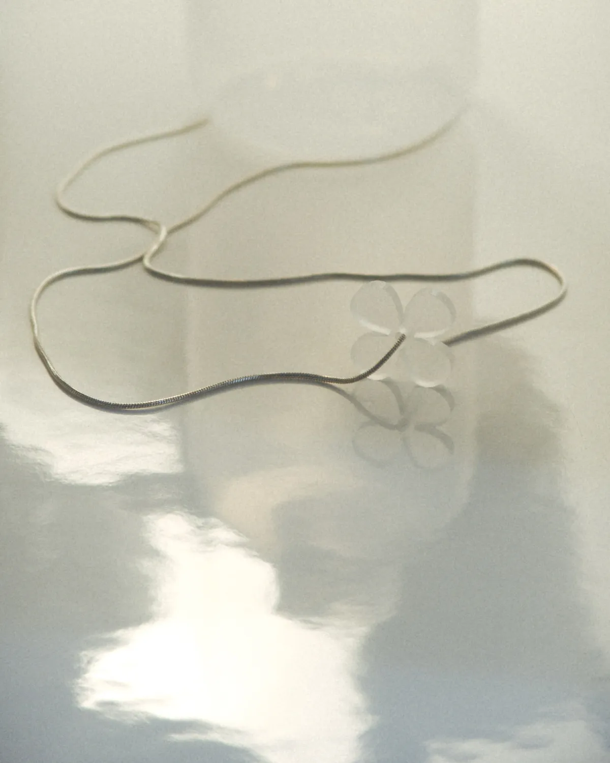 Цепочка с плетением змейка 1 мм в диаметре с трогательным едва заметным цветочком.