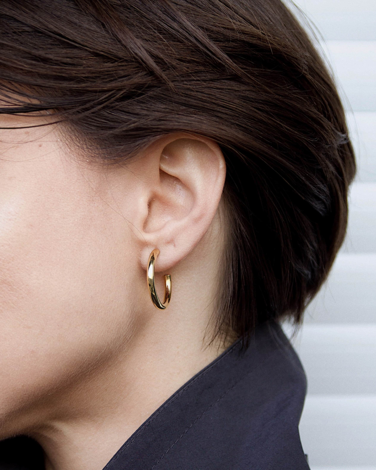 Серьги с чистой линией и правильным изгибом. Лёгкие, объёмные, заметные ровно настолько, чтобы сделать образ собранным, но не строгим. Легко сочетаются с тем, что уже есть в гардеробе — от кашемирового свитера до мужской рубашки.