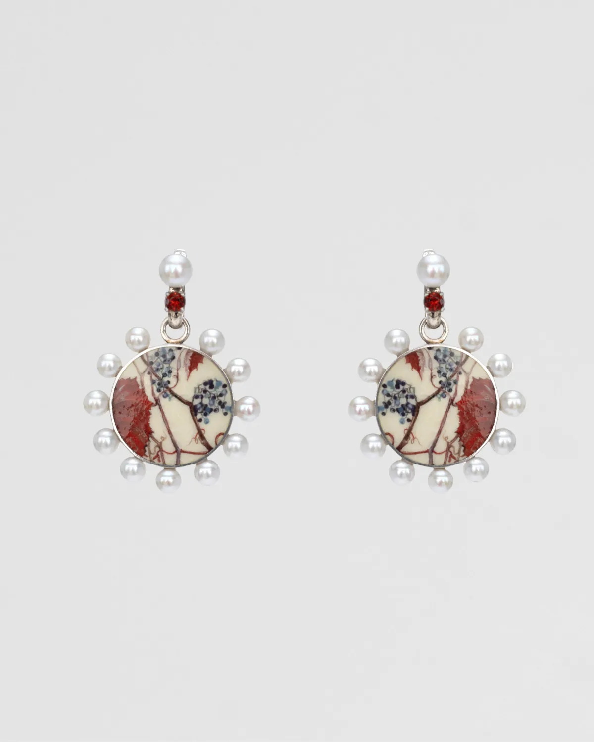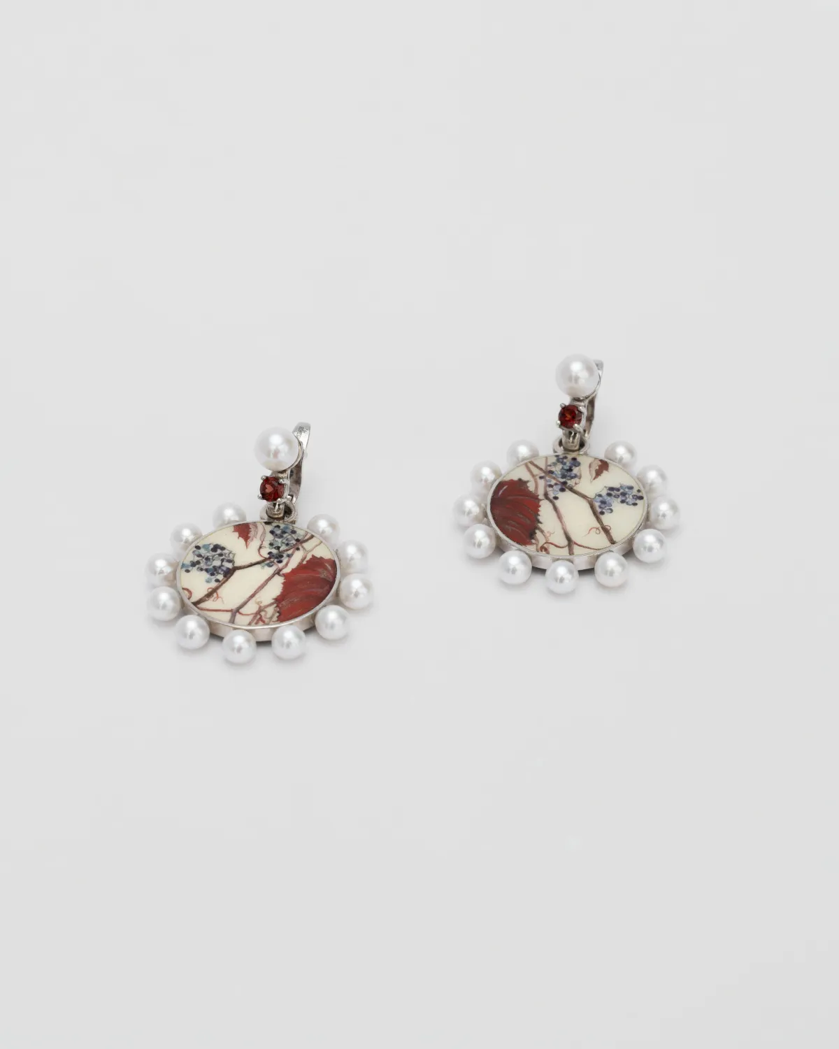 Уникальные серьги от Beenamel с художественной росписью по горячей эмали. Каждое украшение бренда — предмет искусства, дополненный полудрагоценными камнями в тон рисунку. Выполнены из серебра с сатиновым золотым финишем, который не будет отвлекать от росписи и сияния минералов. Тип застёжки — английский замок.