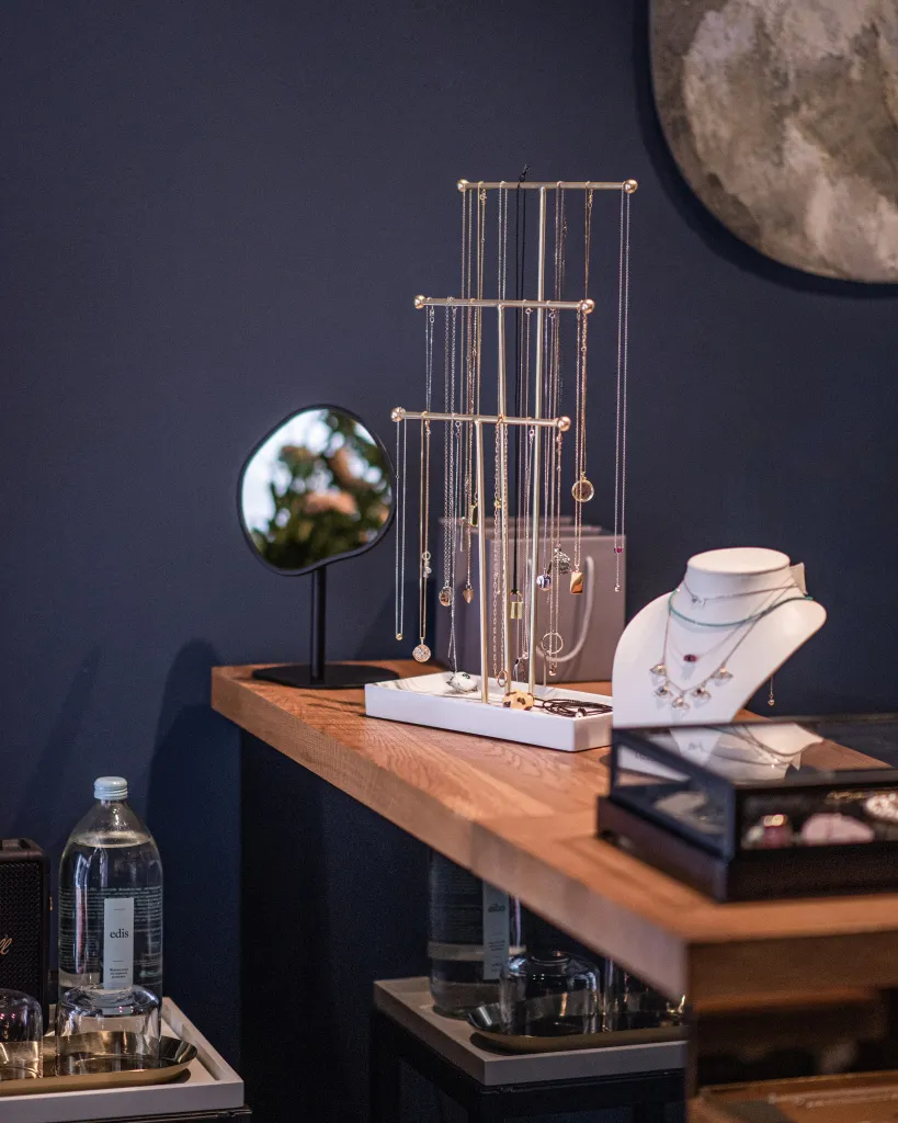 В шоуруме представлено более тридцати брендов дизайнерских украшений разных ценовых сегментов и стилистик.